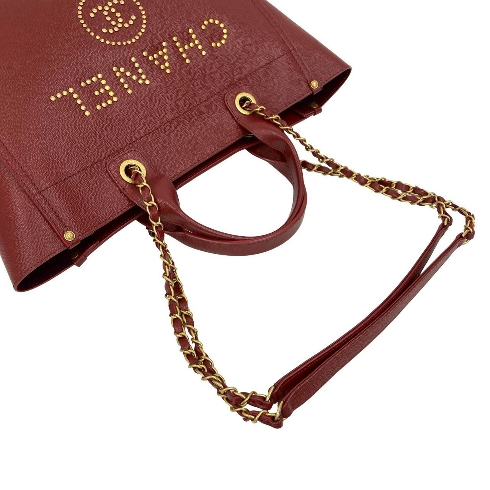 CHANEL Deauville Caviar Leather 2-Way Handbag/Semi-Shoulder Bag, Red, 14577