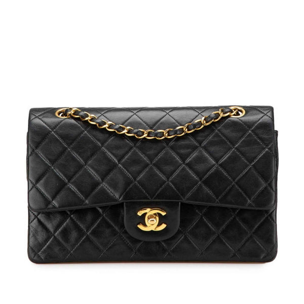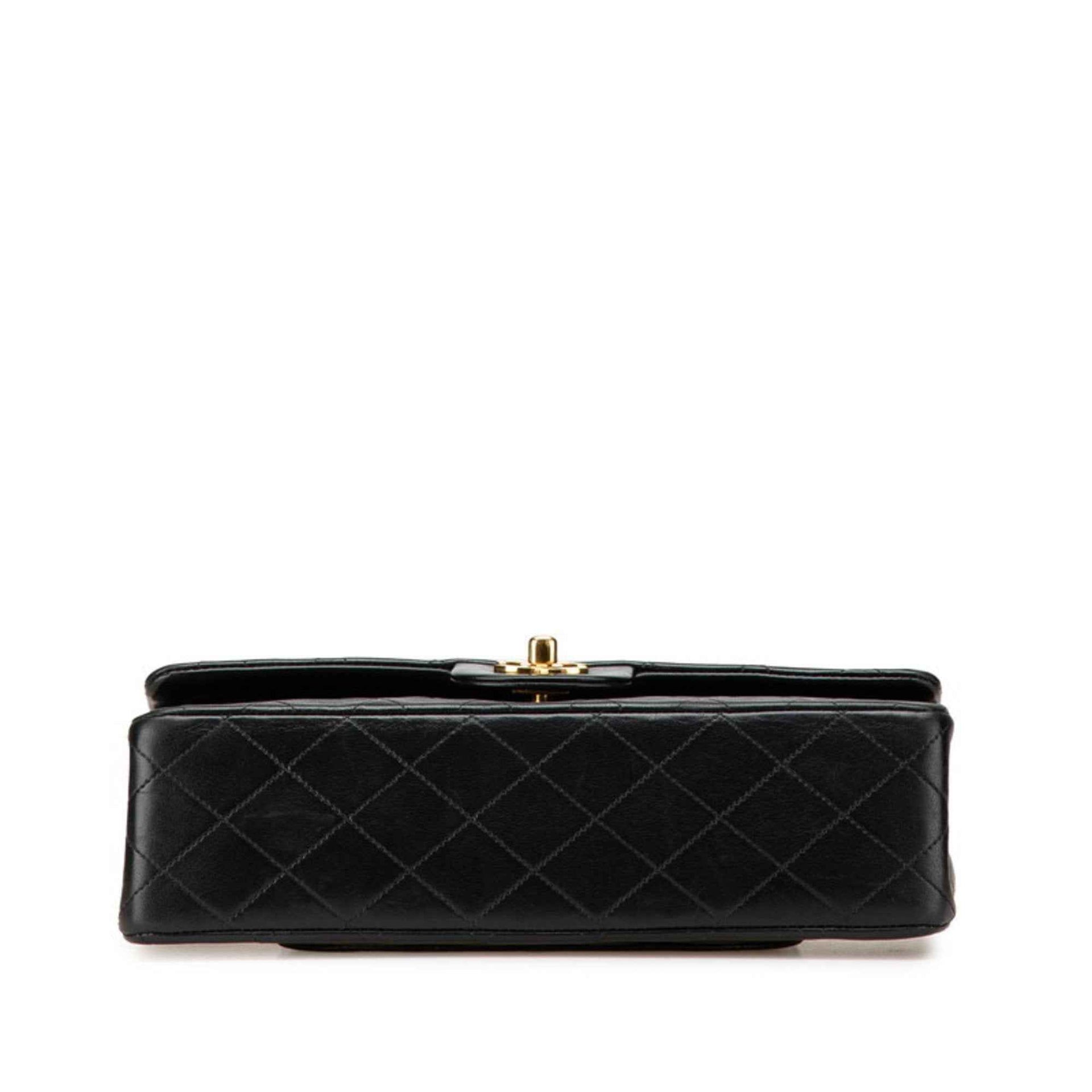 CHANEL Matelasse 25 Coco Mark Double Flap Shoulder Bag in Black Lambskin for Women