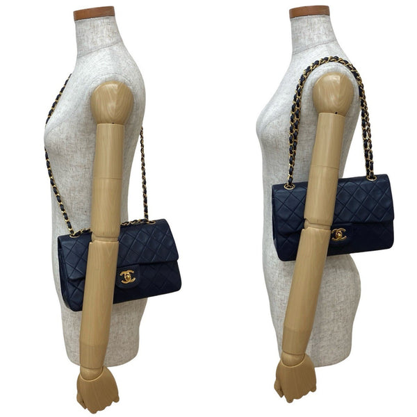 CHANEL Matelasse Coco Double Flap Lambskin Leather Chain Shoulder Bag, Navy, 27979