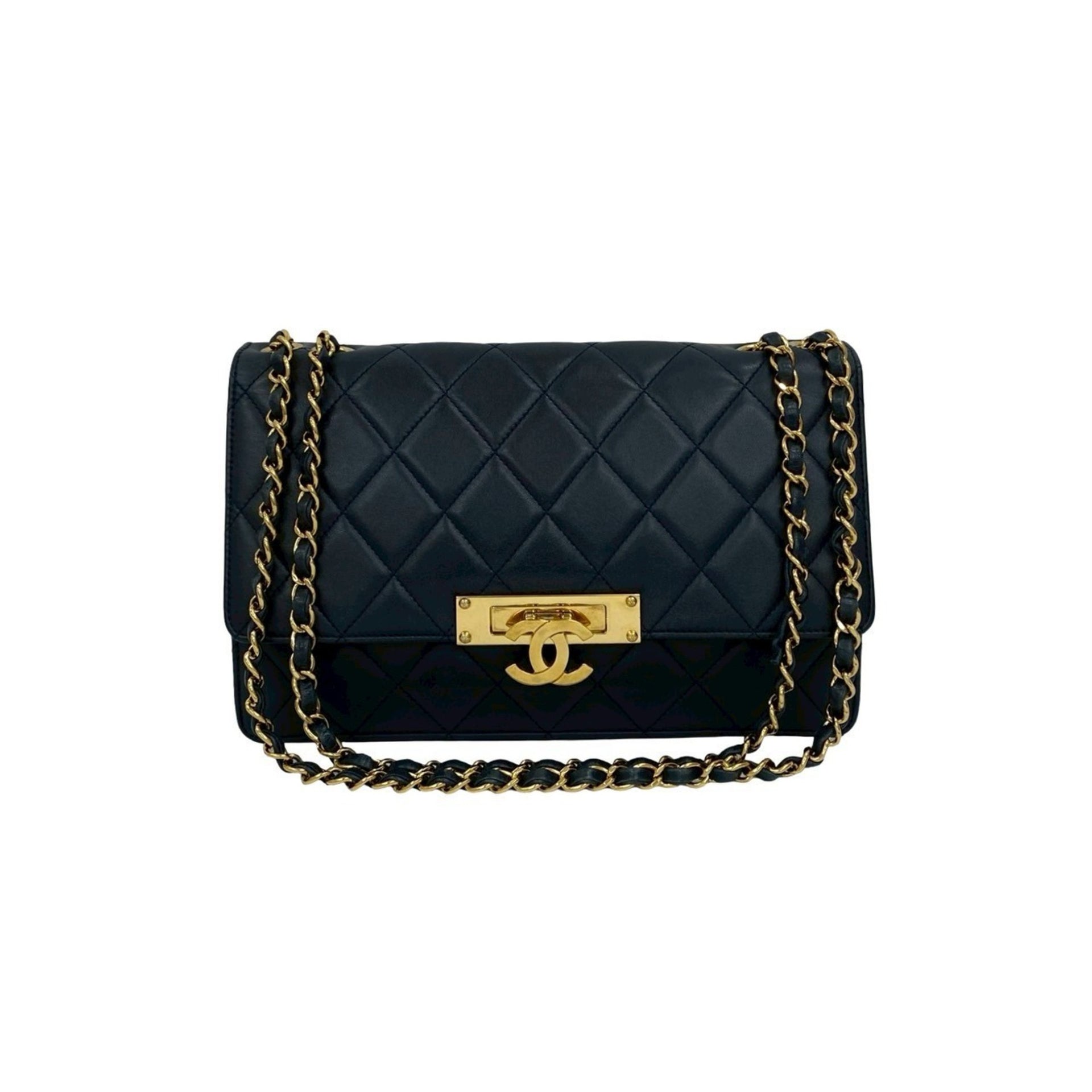 CHANEL Matelasse Coco Lambskin Chain Semi Shoulder Bag, Navy, 30691