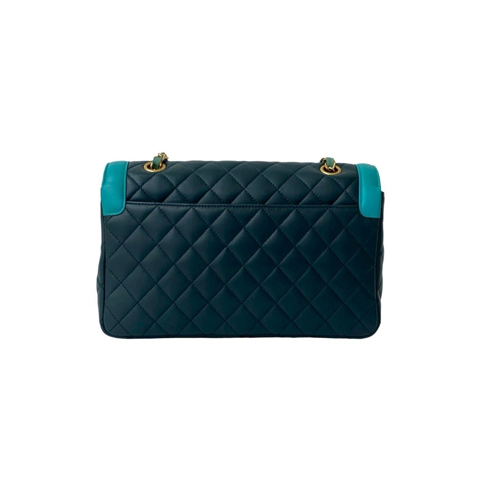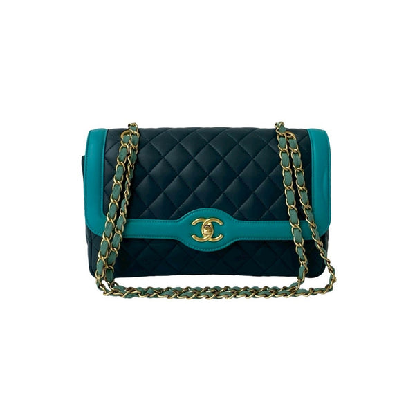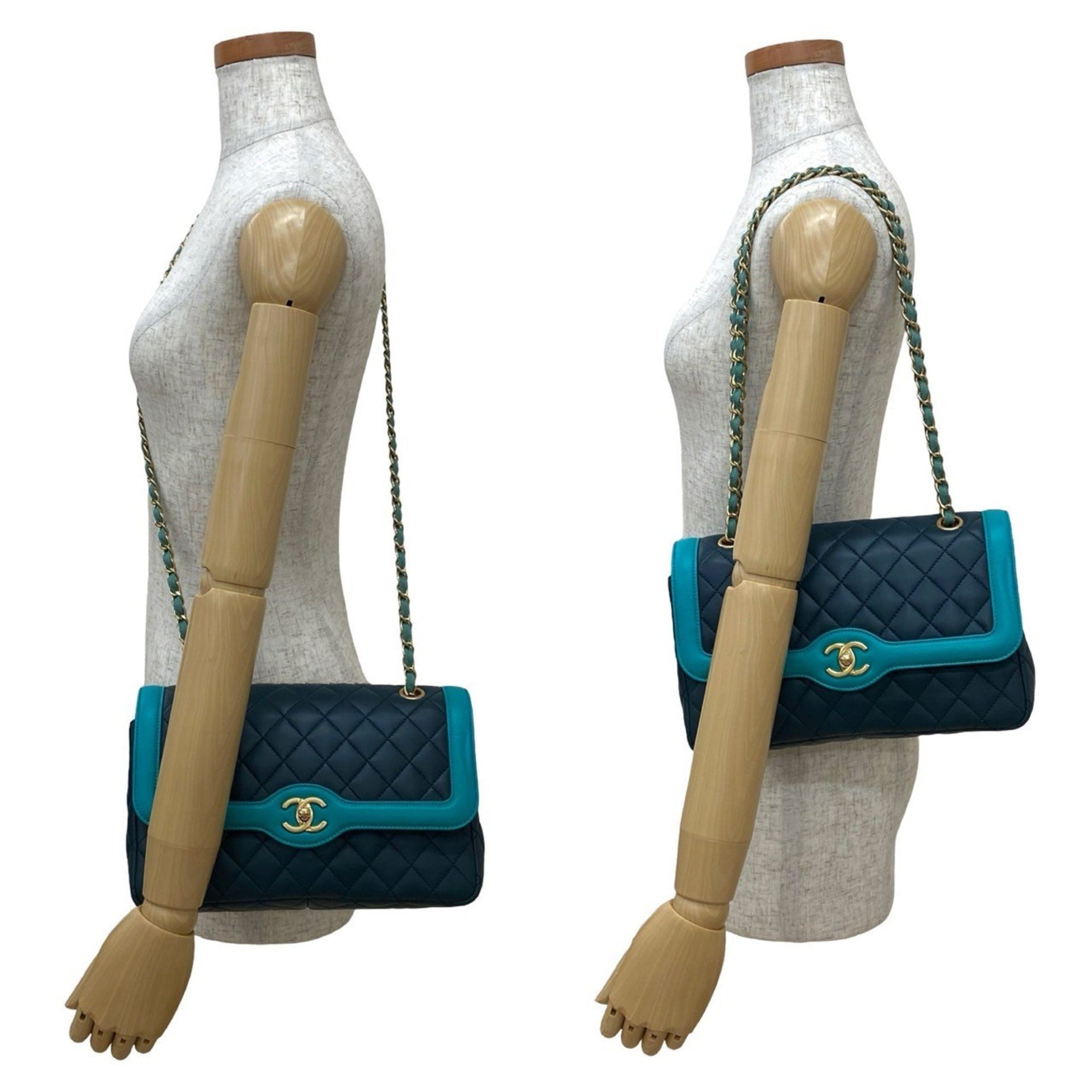 CHANEL Matelasse Coco Lambskin Leather Chain Semi Shoulder Bag, Navy Blue, 40561