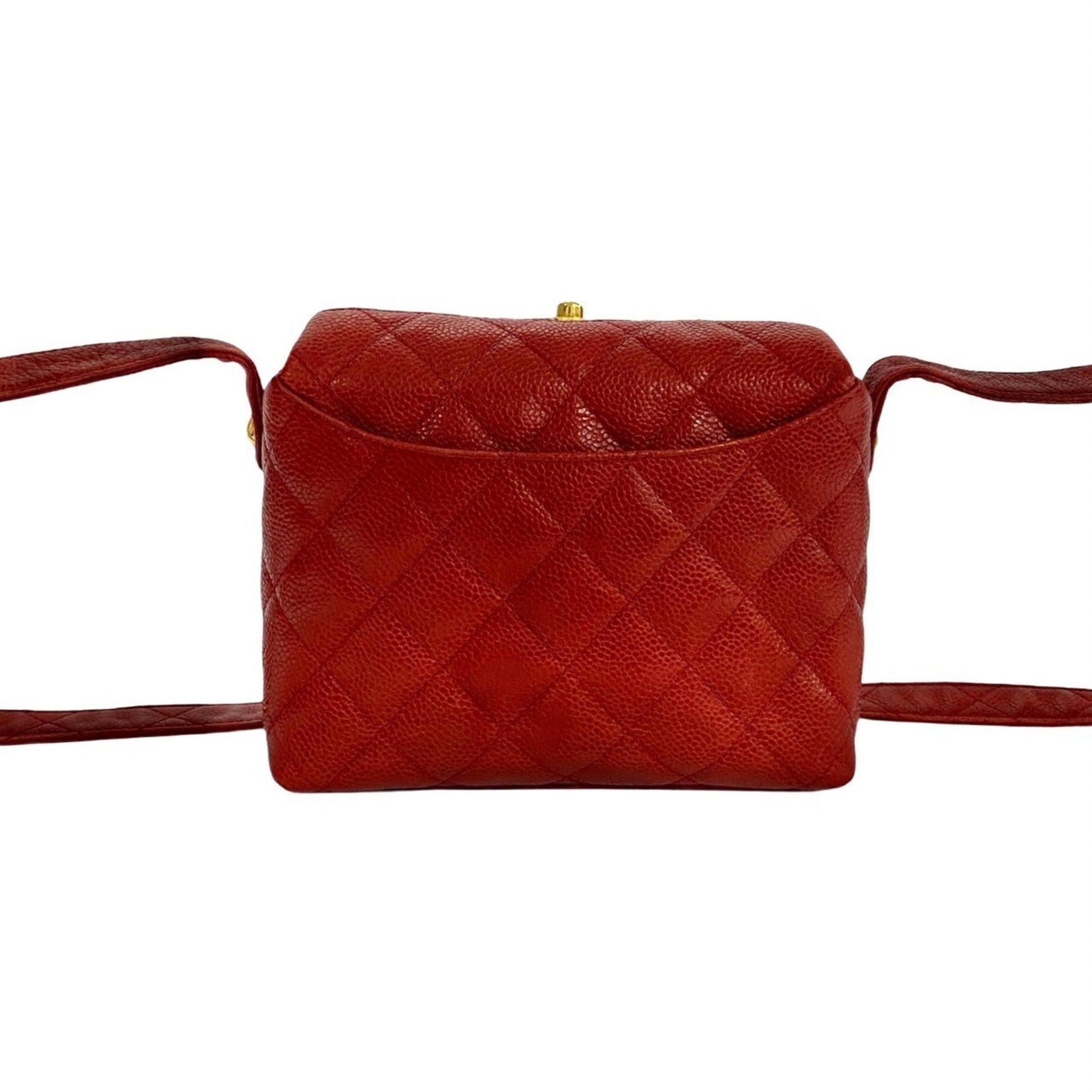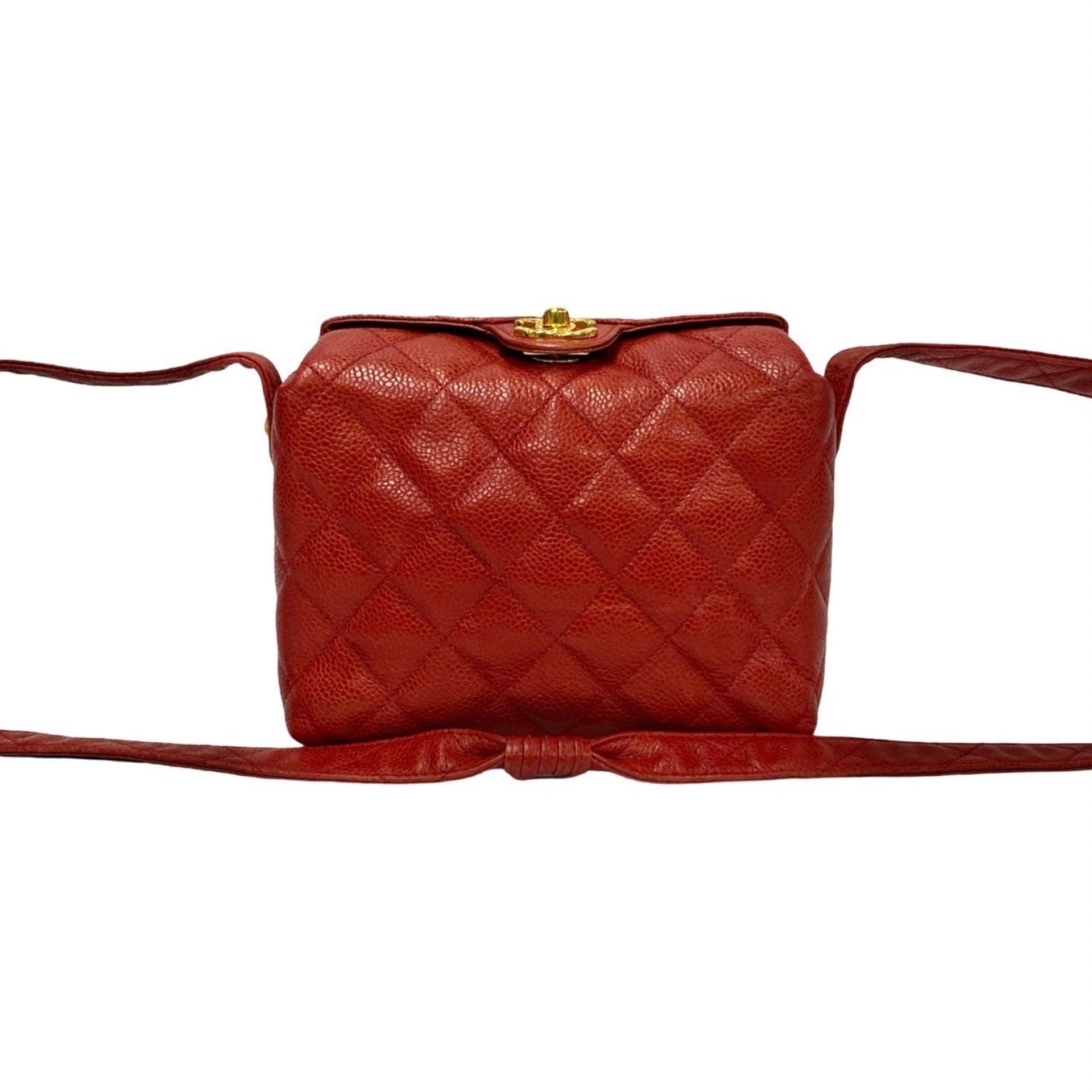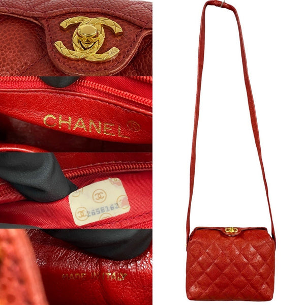 CHANEL Matelasse Coco Mark Caviar Leather Shoulder Bag/Pochette in Red (30305)