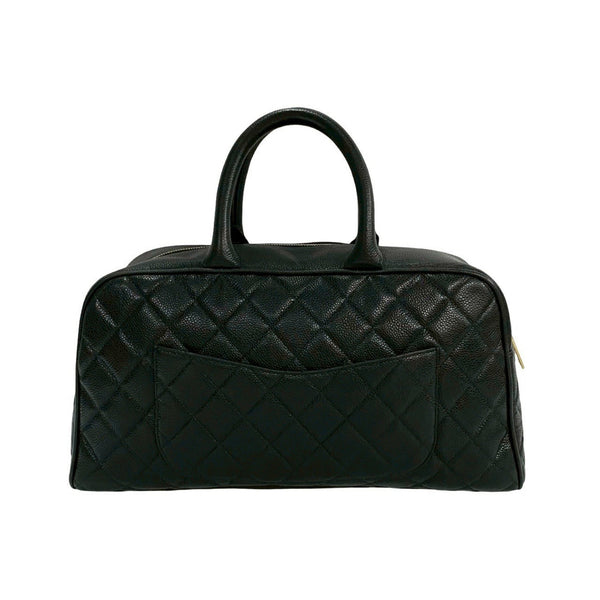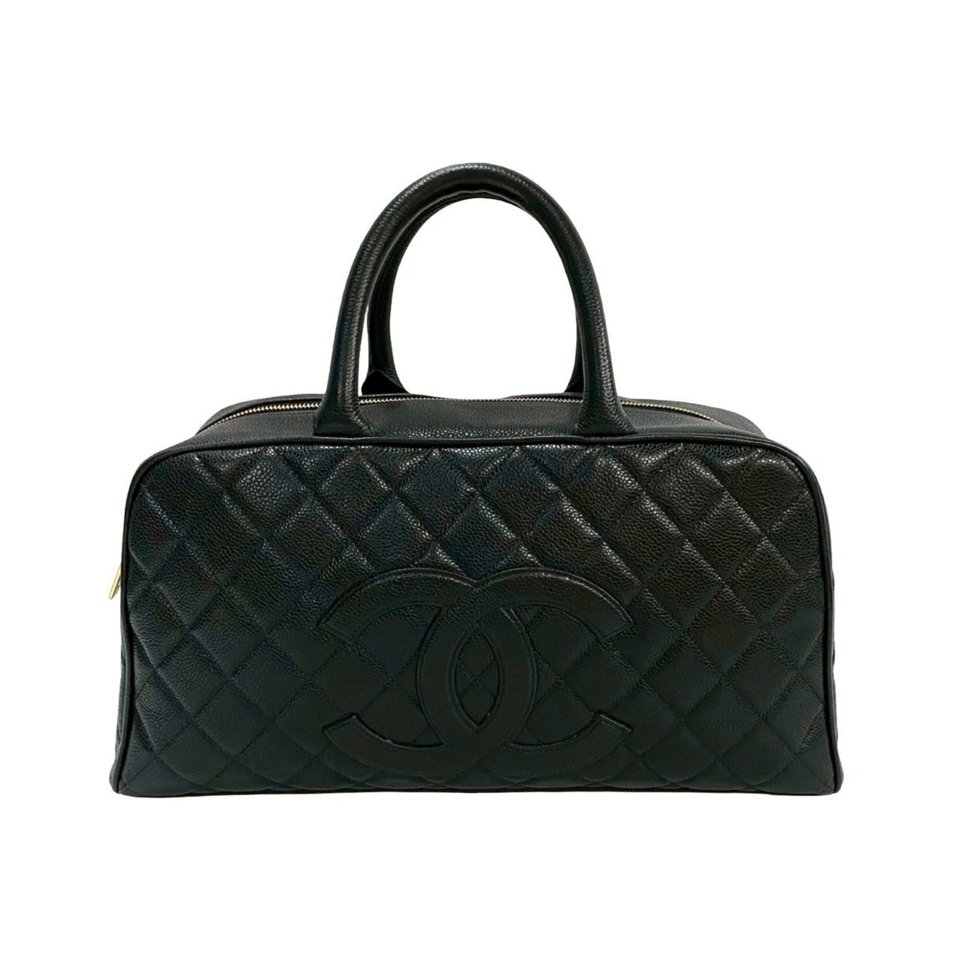 CHANEL Matelasse Coco Mark Caviar Skin Boston Bag Handbag Black 94272
