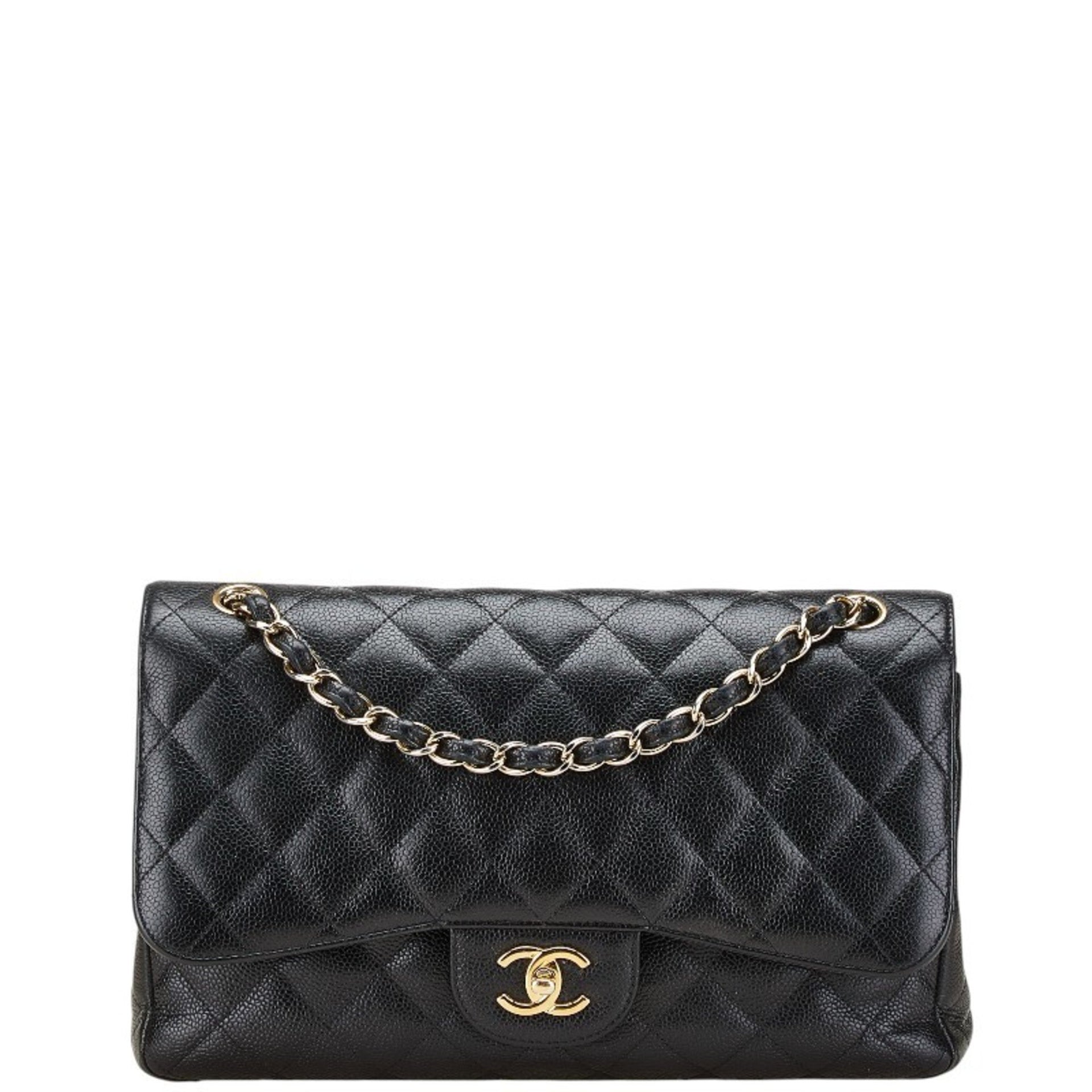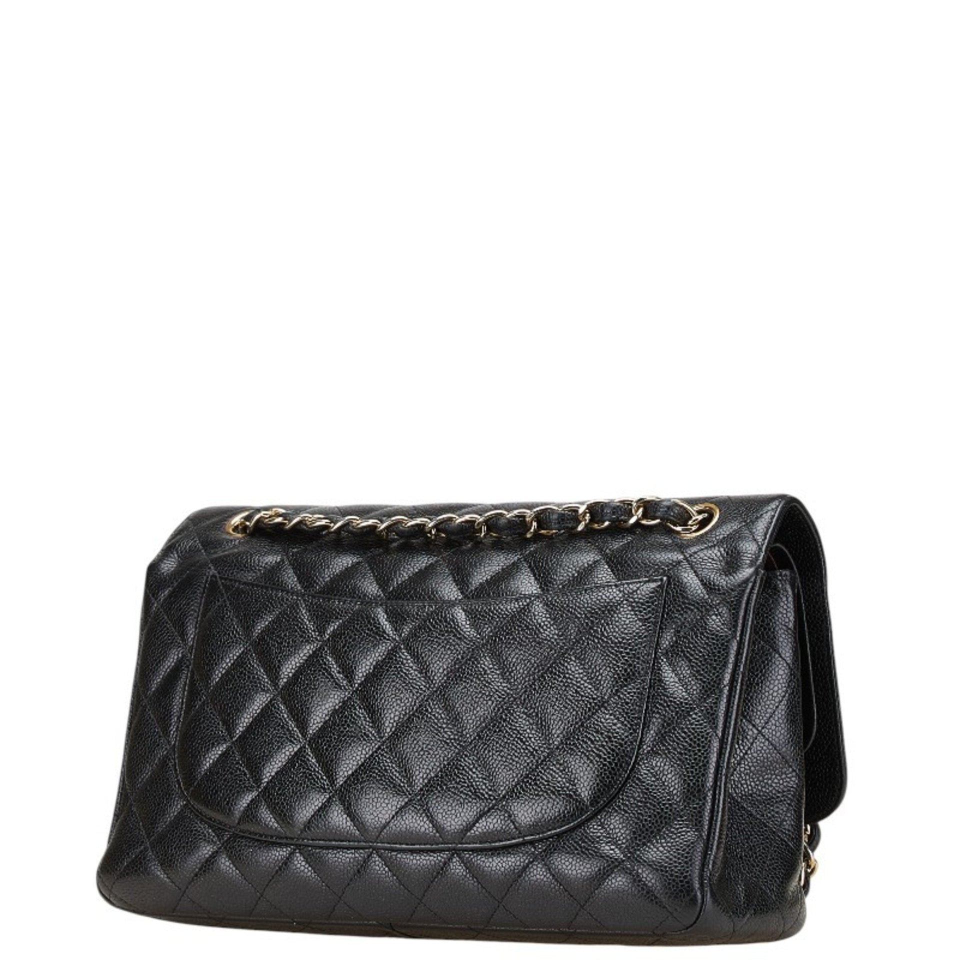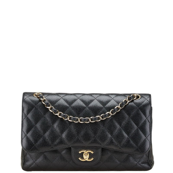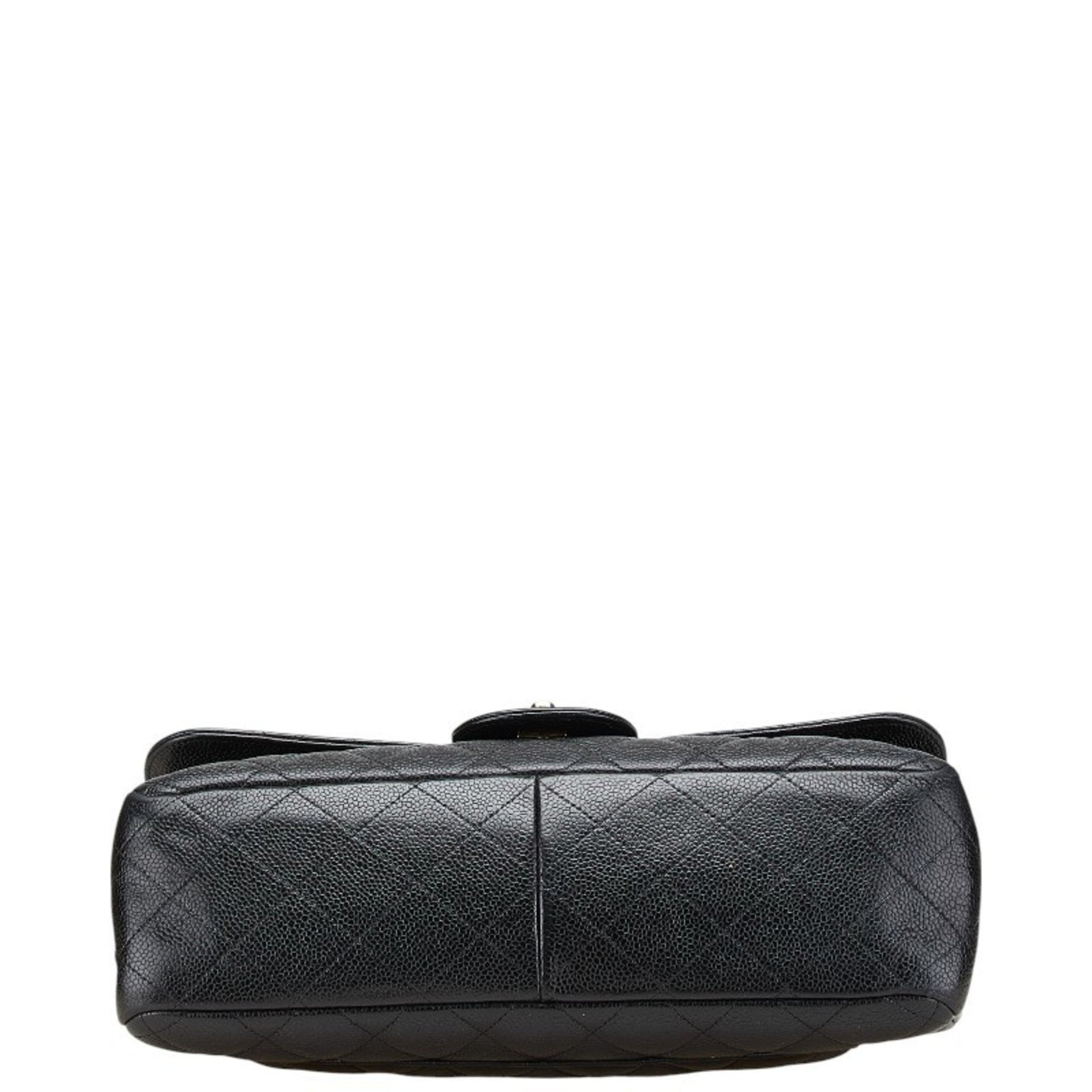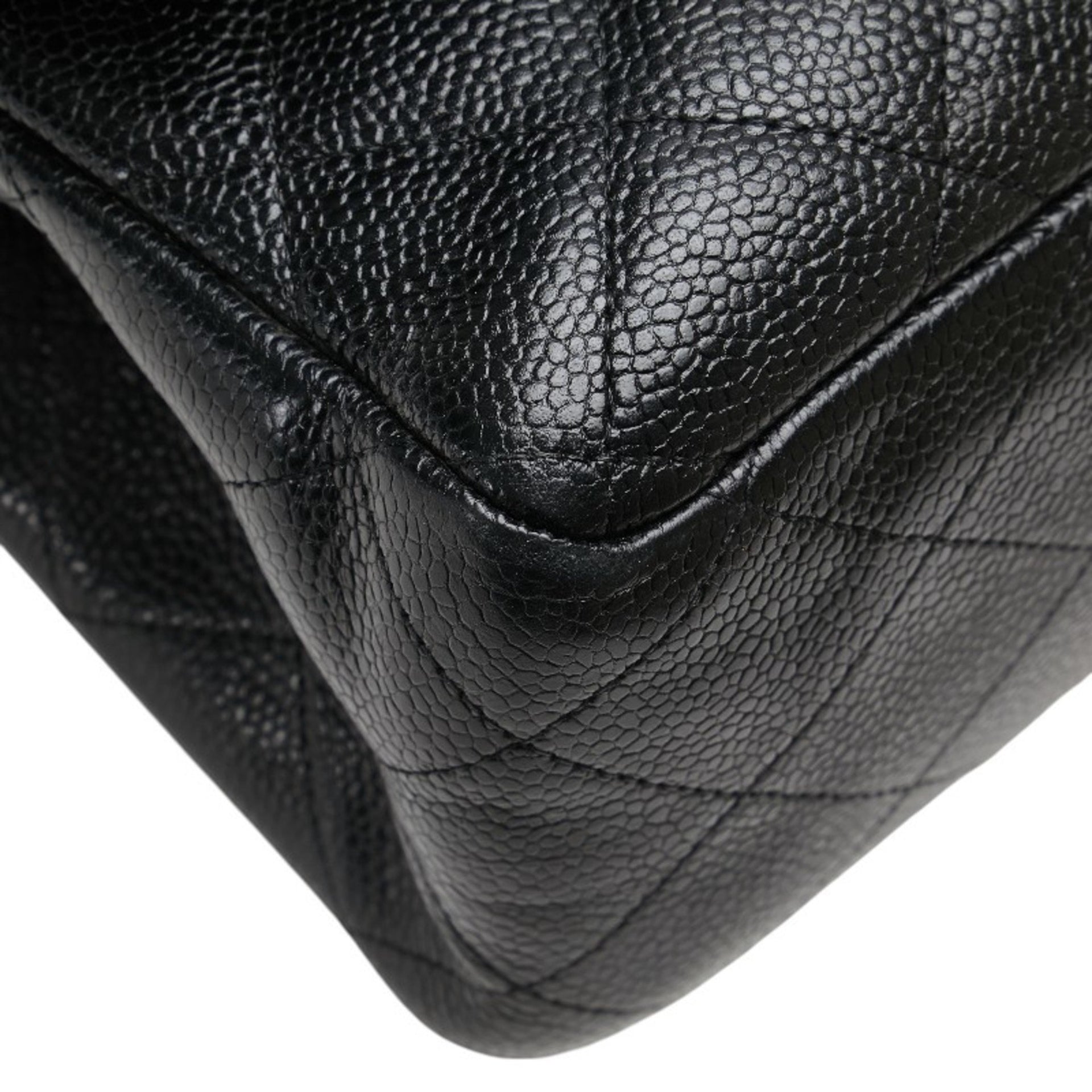 CHANEL Matelasse Coco Mark Double Flap Chain Shoulder Bag Handbag Black Caviar Skin Women\'s