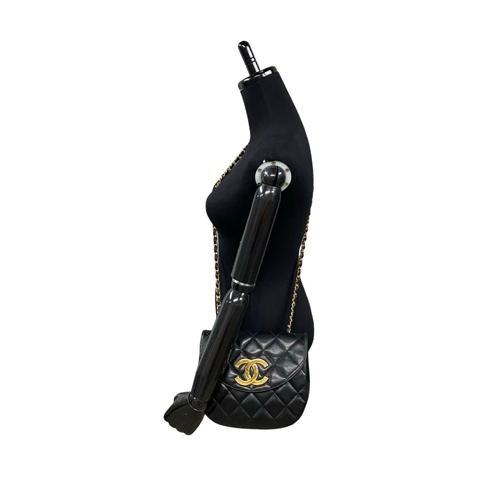 CHANEL Matelasse Coco Mark Lambskin Chain Shoulder Bag Pochette Black 719-7