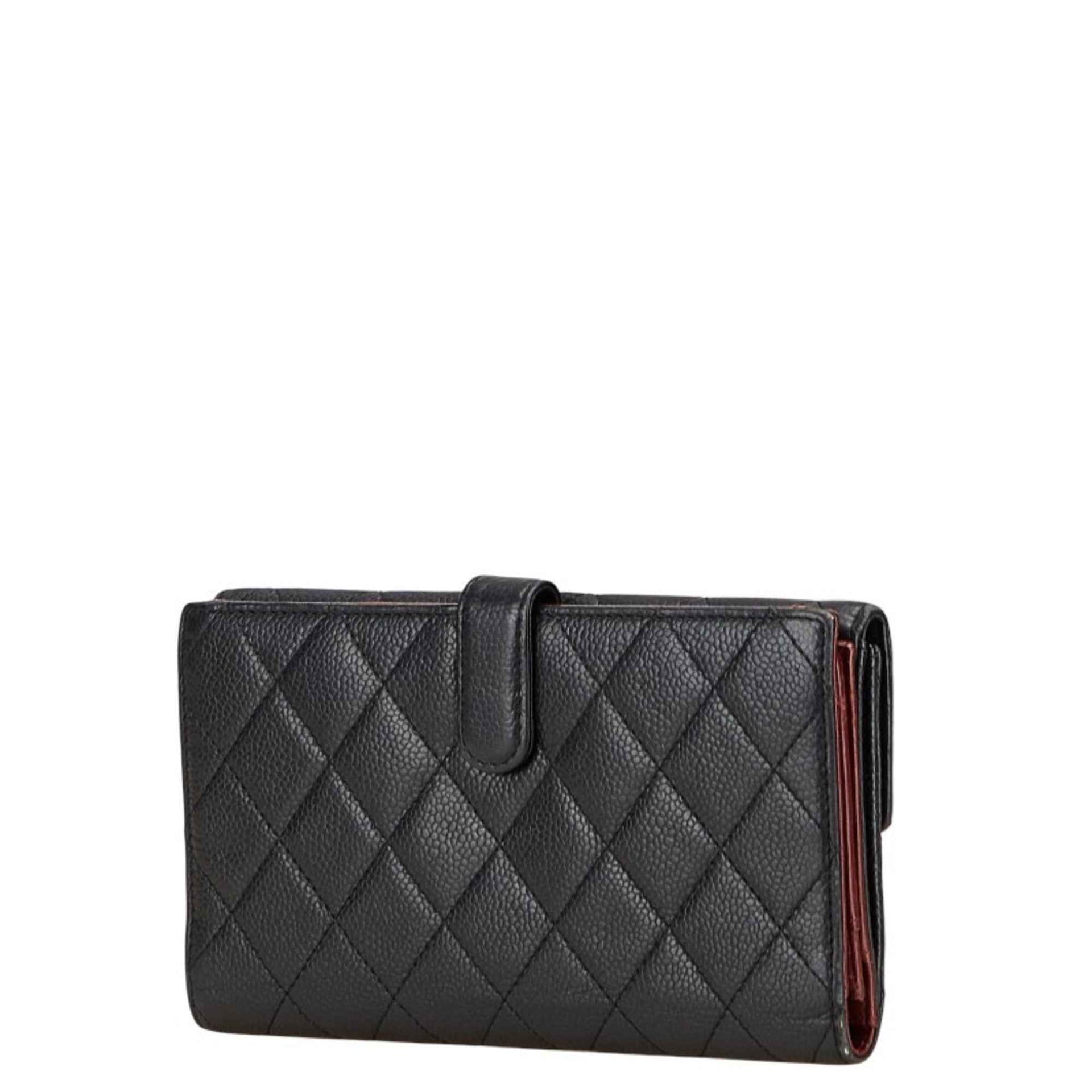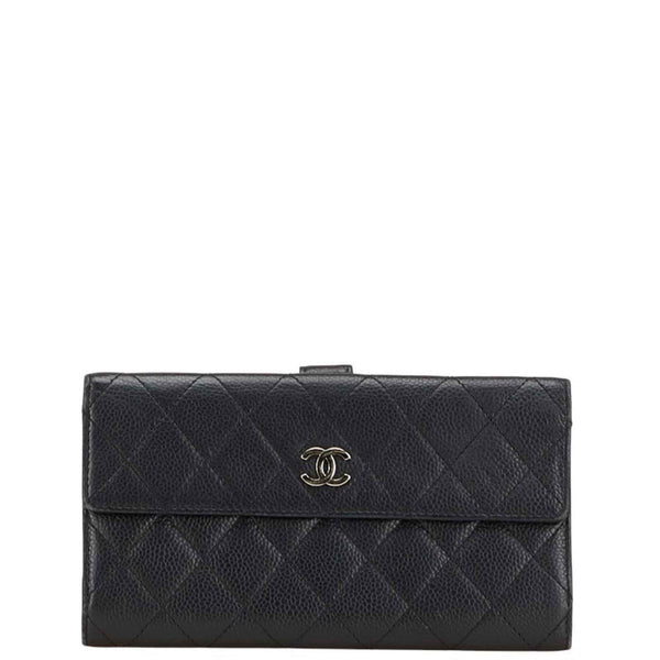 CHANEL Matelasse Coco Mark Long Wallet in Black Caviar Leather for Women