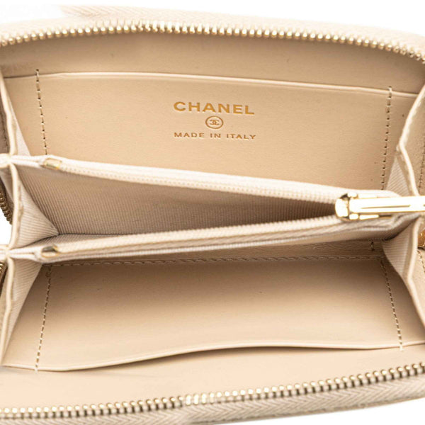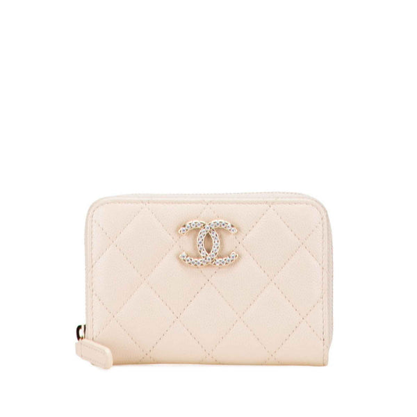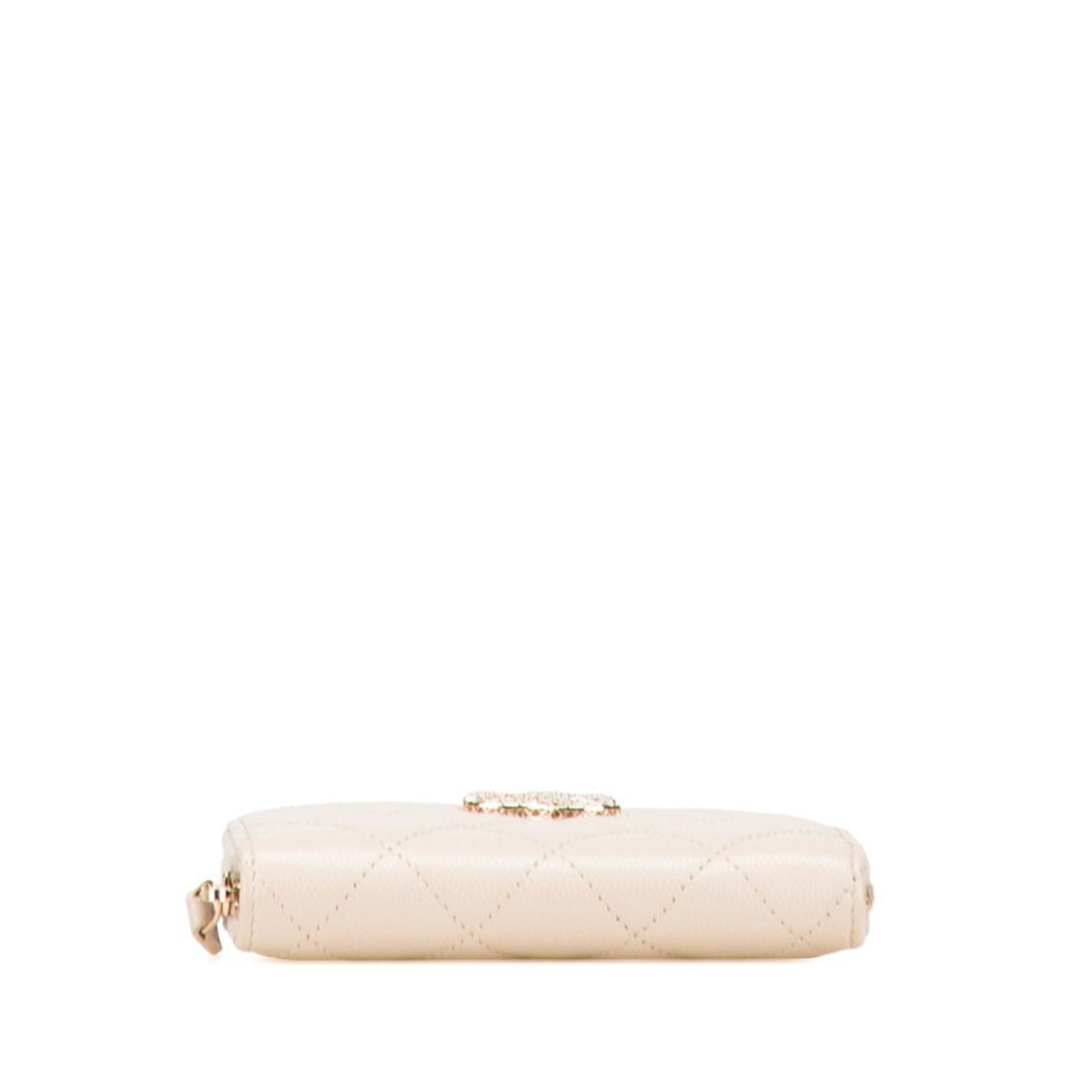 CHANEL Matelasse Coco Mark Rhinestone Wallet/Coin Case Beige Caviar Leather Women\'s