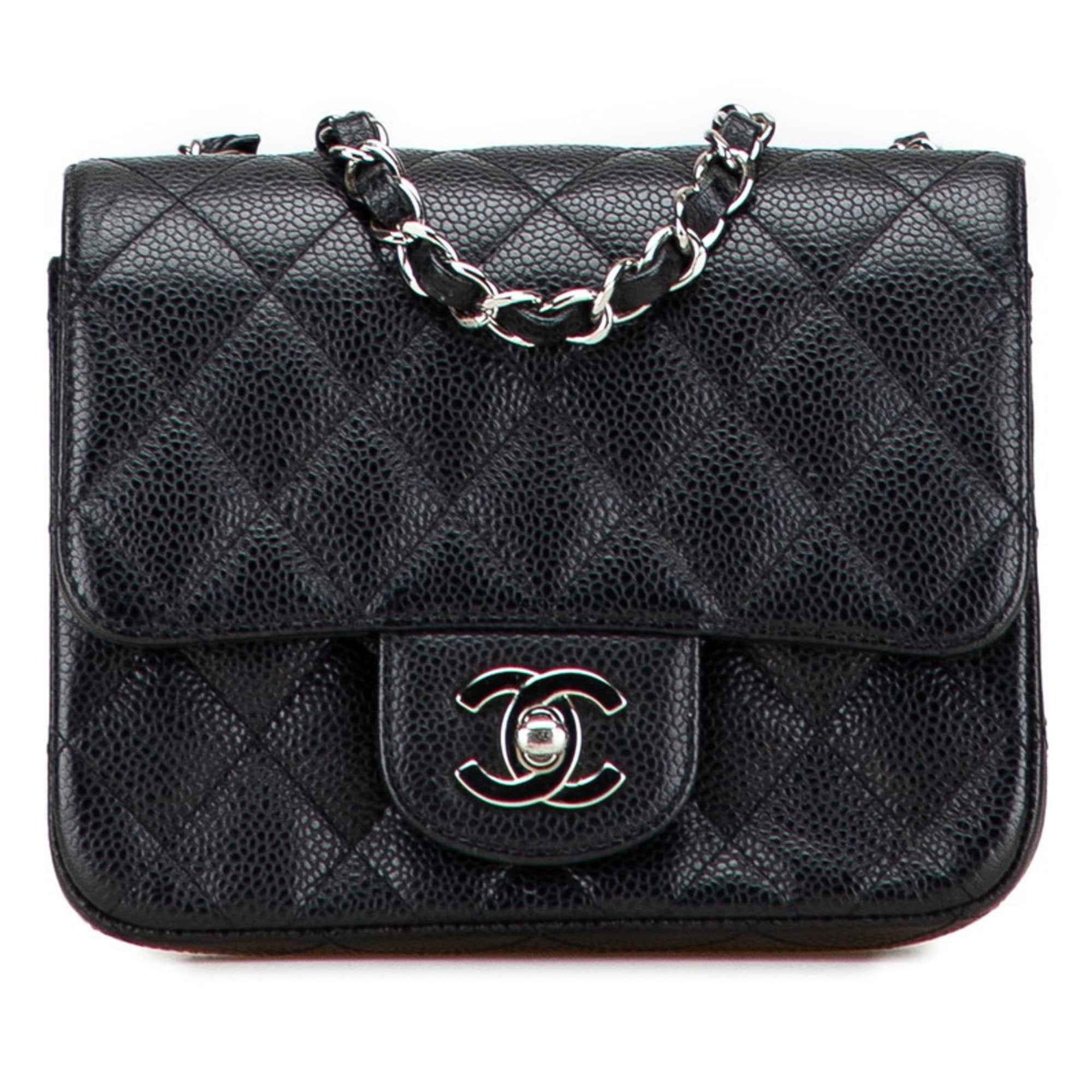 CHANEL Matelasse Coco Mark Shoulder Bag in Black Caviar Skin for Women