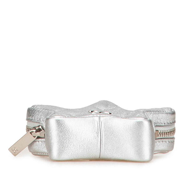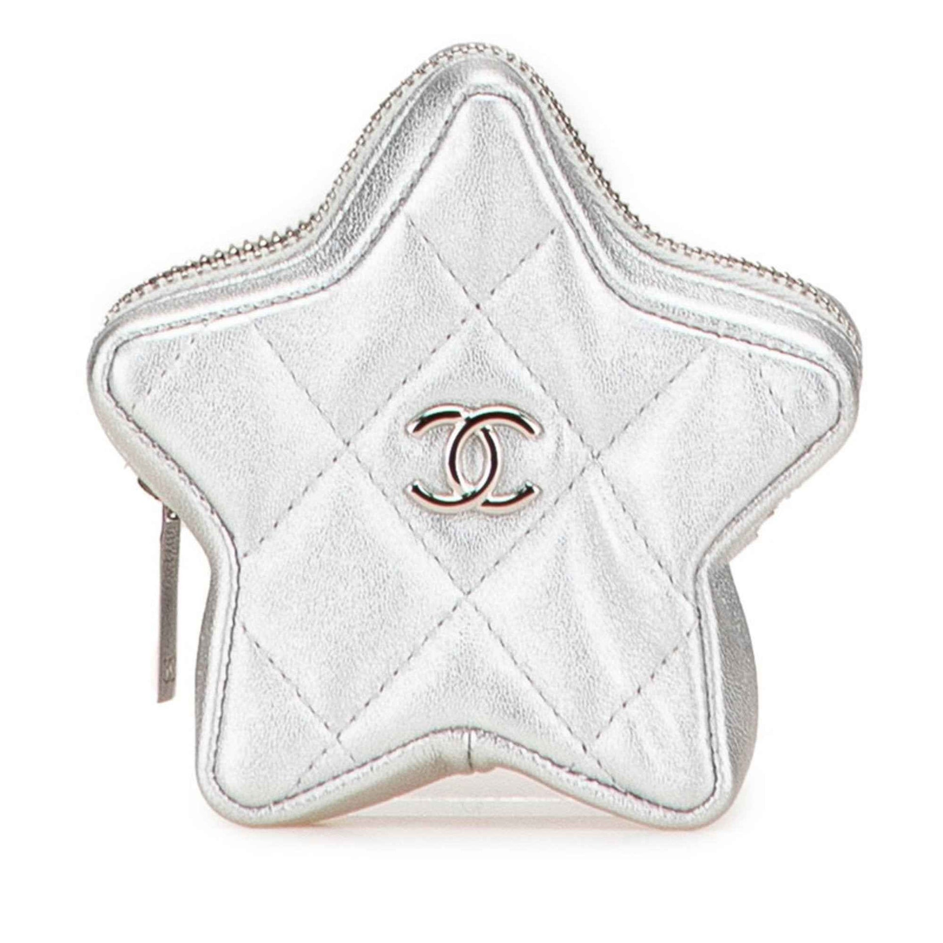CHANEL Matelasse Coco Mark Star Wallet/Coin Case Mini Pouch Silver Lambskin Women\'s
