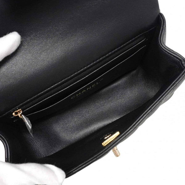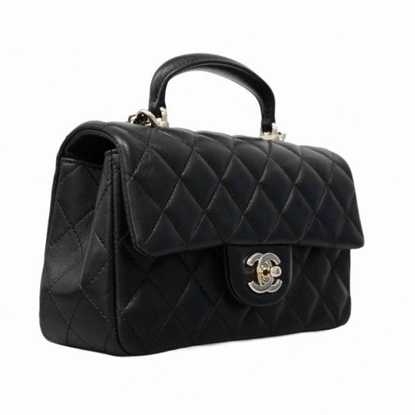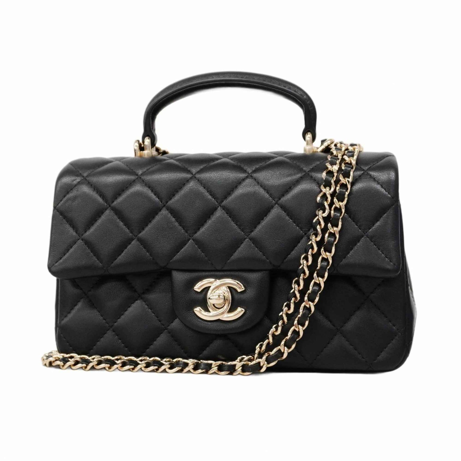 Chanel Matelasse Handbag, Black Lambskin, Champagne, 2-Way Bag for Women