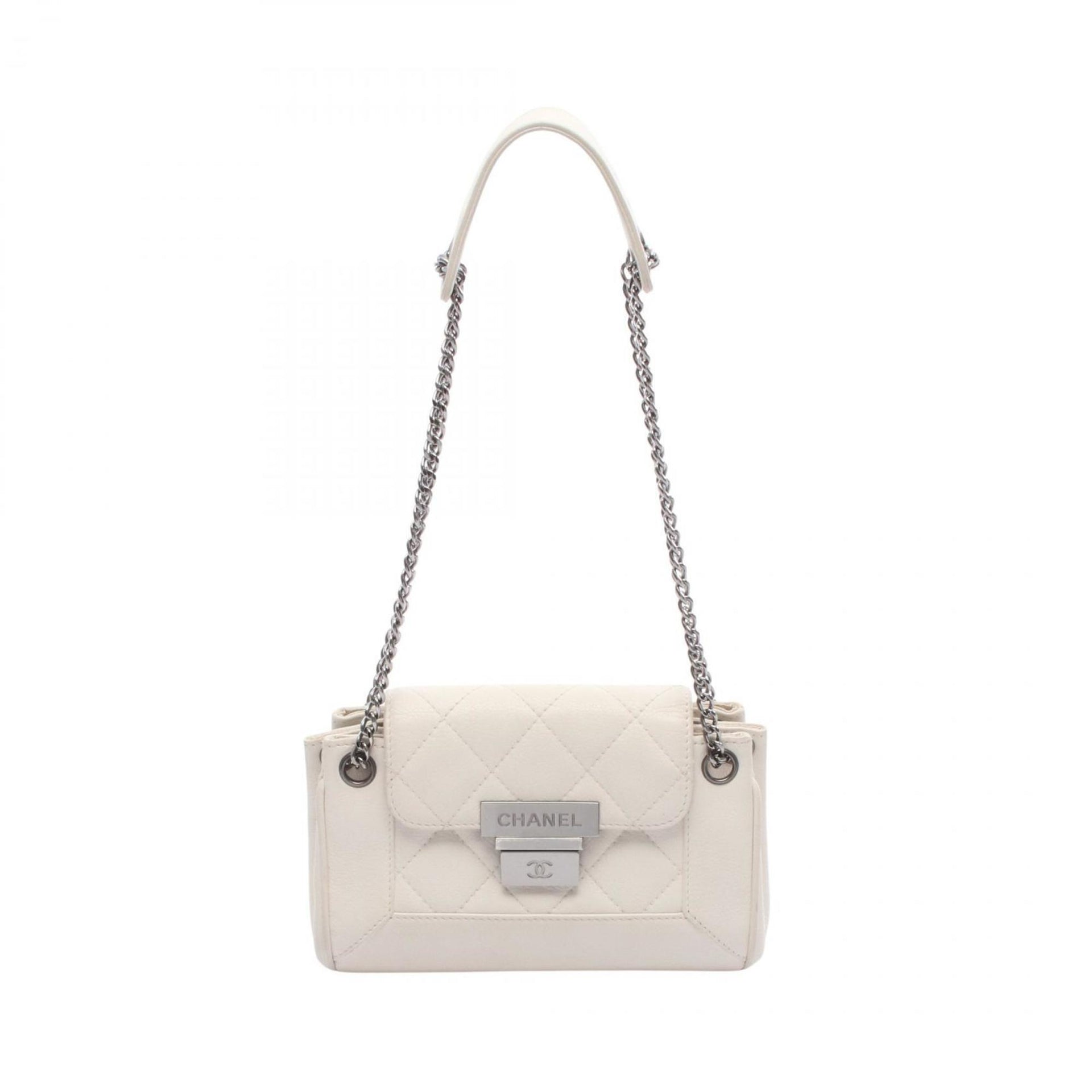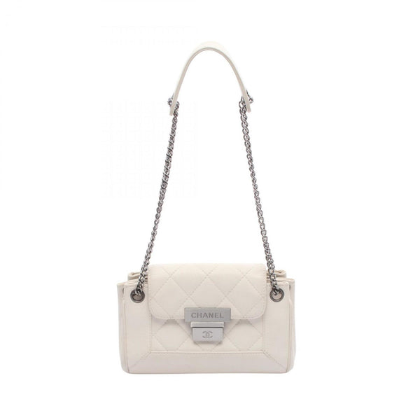 CHANEL Matelasse Shoulder Bag, Leather, Women\'s, White