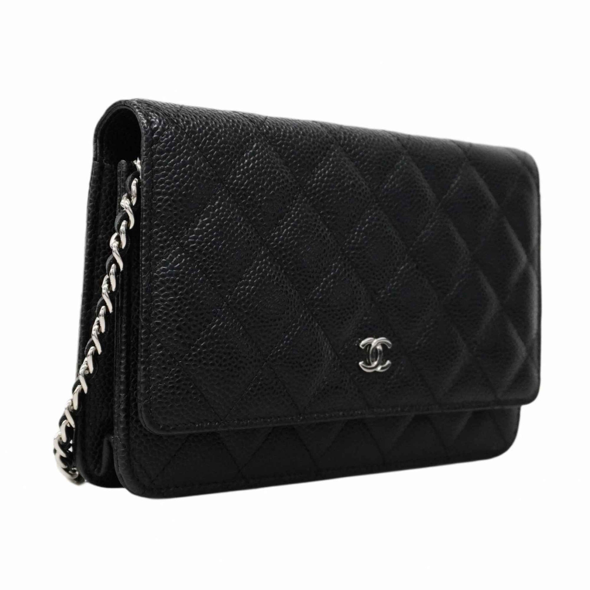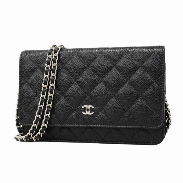 Chanel Matelasse Shoulder Wallet in Caviar Skin, Black, Women\'s