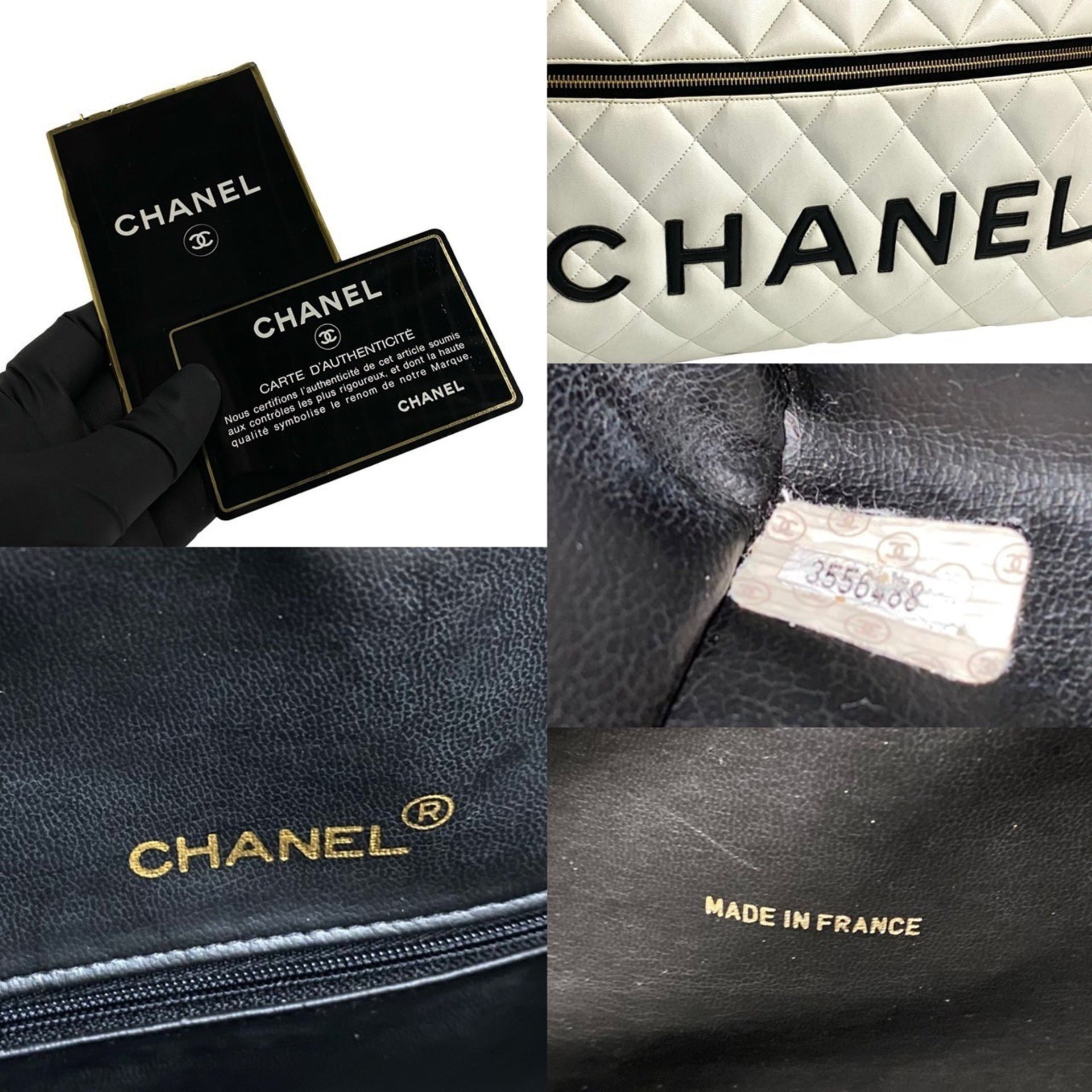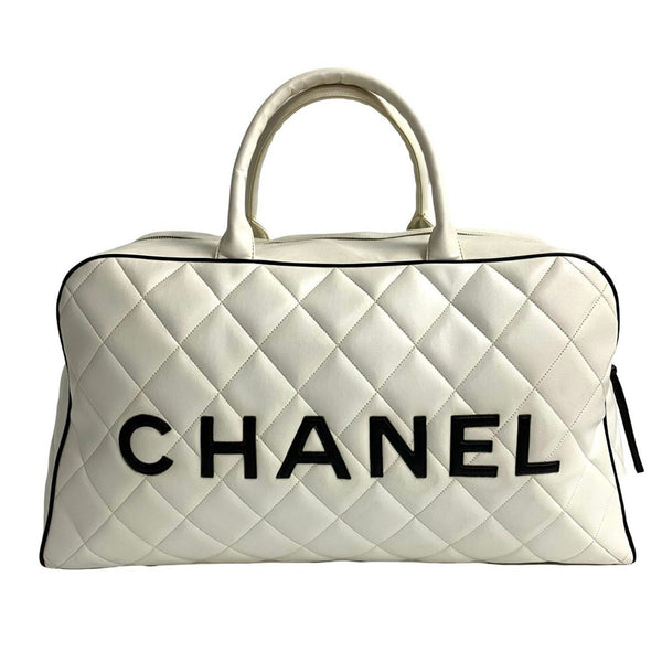 CHANEL Matelasse Sport Line Logo Leather Boston Bag in White and Black (50409)