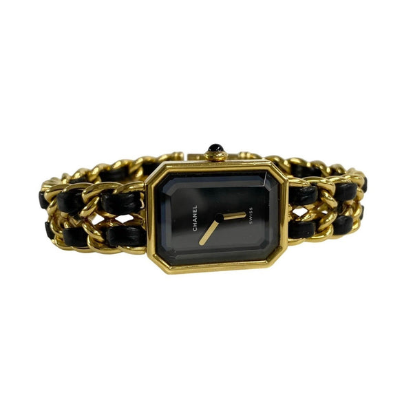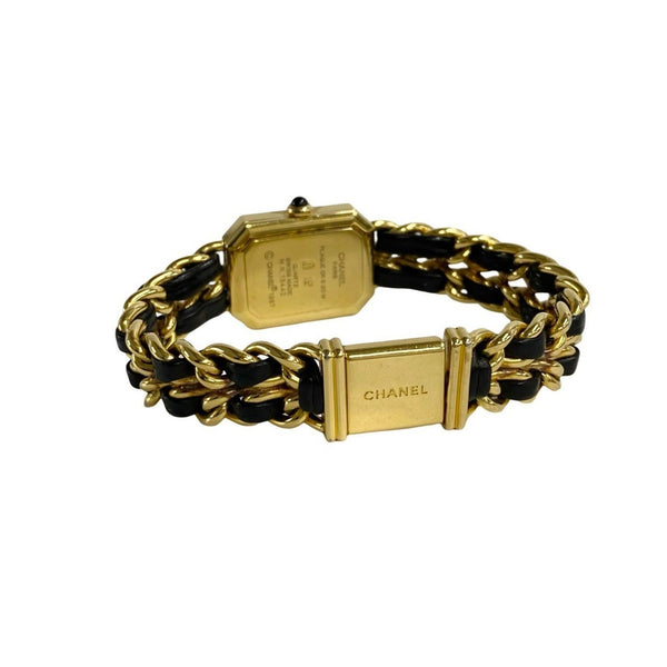 CHANEL Premiere L Quartz Stainless Steel Leather Watch for Women, Gold and Black, 26575