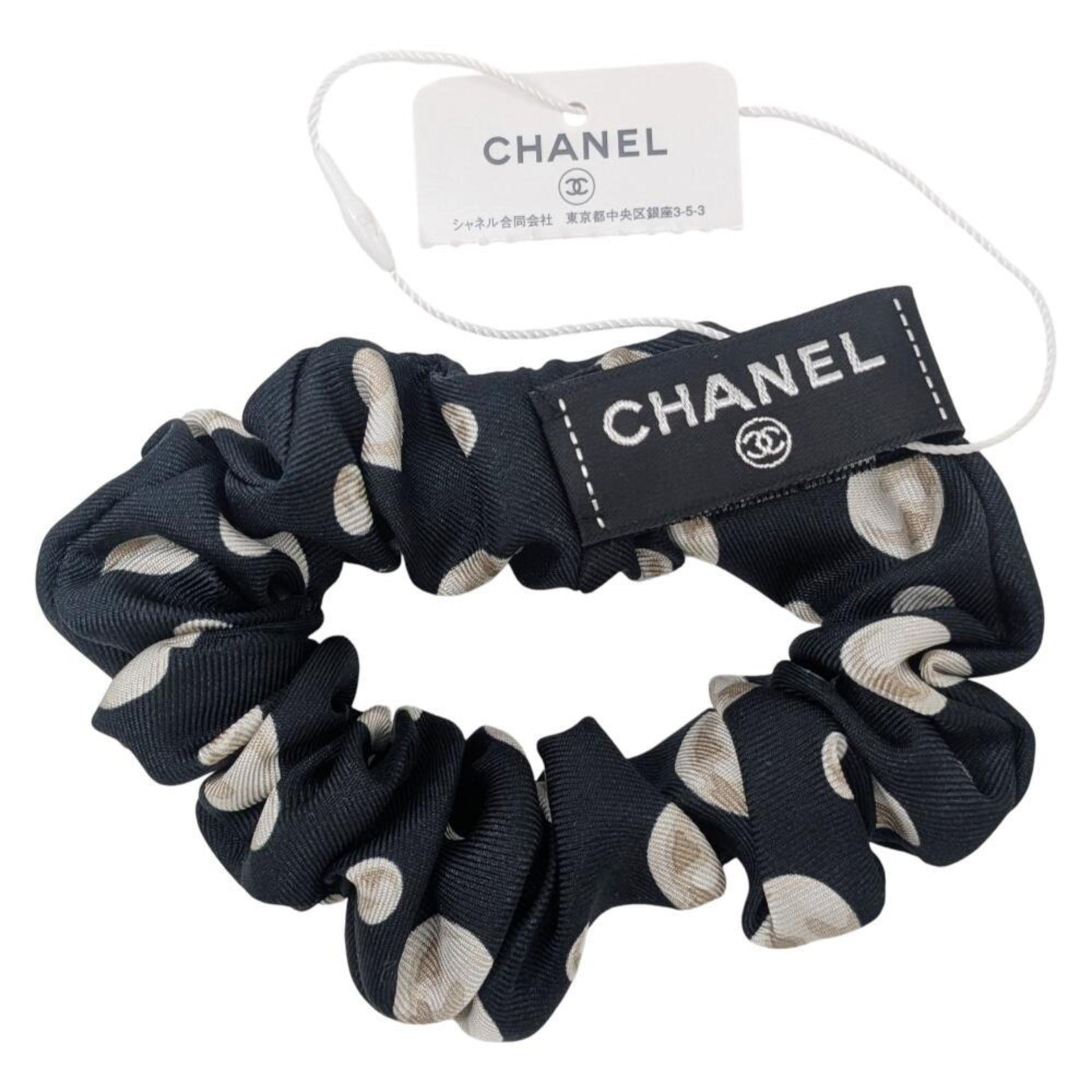 CHANEL Scrunchie Black Polka Dot Hair Accessory for Women