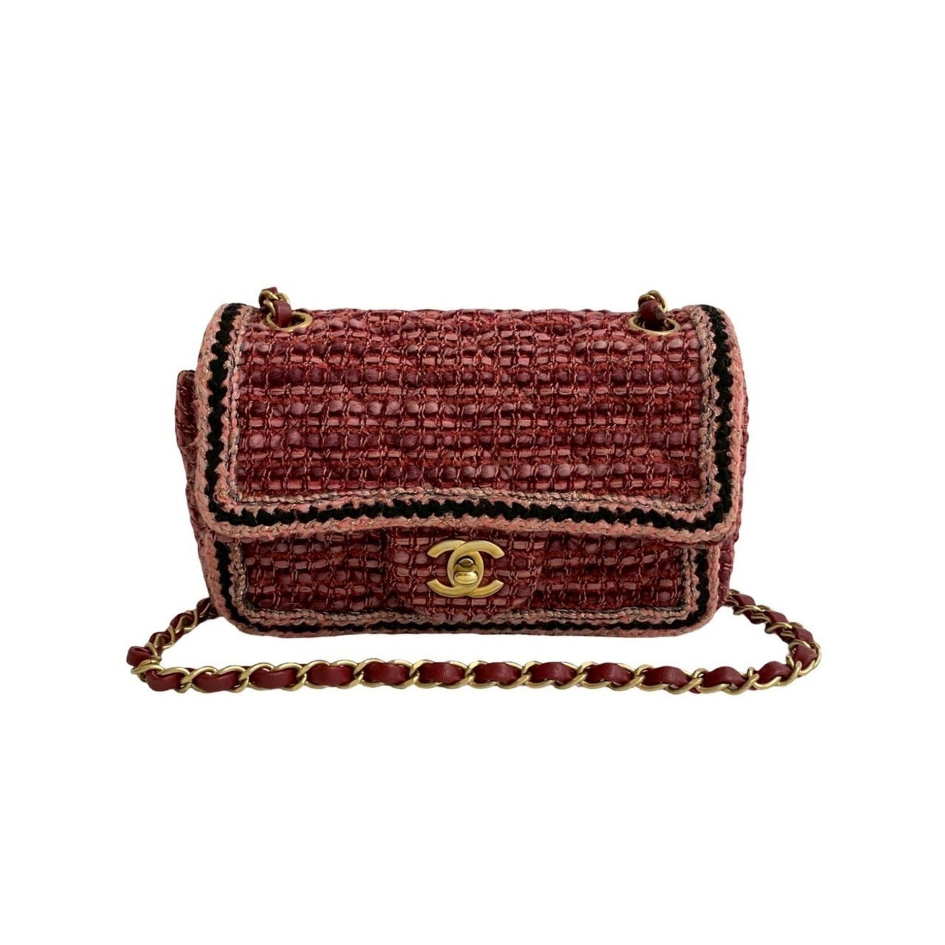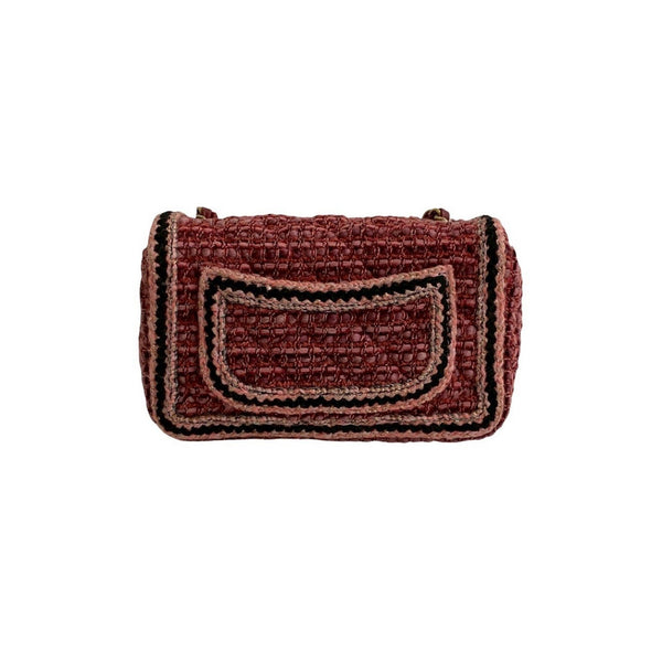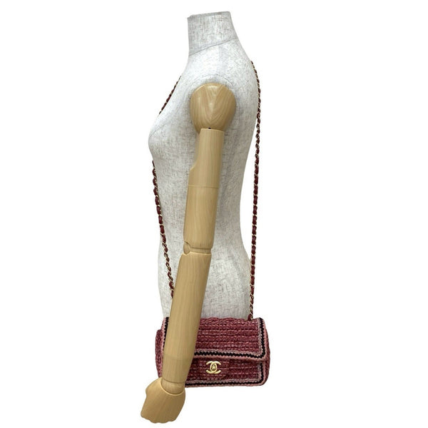 CHANEL Tweed Matelasse Coco Mark Chain Shoulder Bag Pochette Multicolor 25859