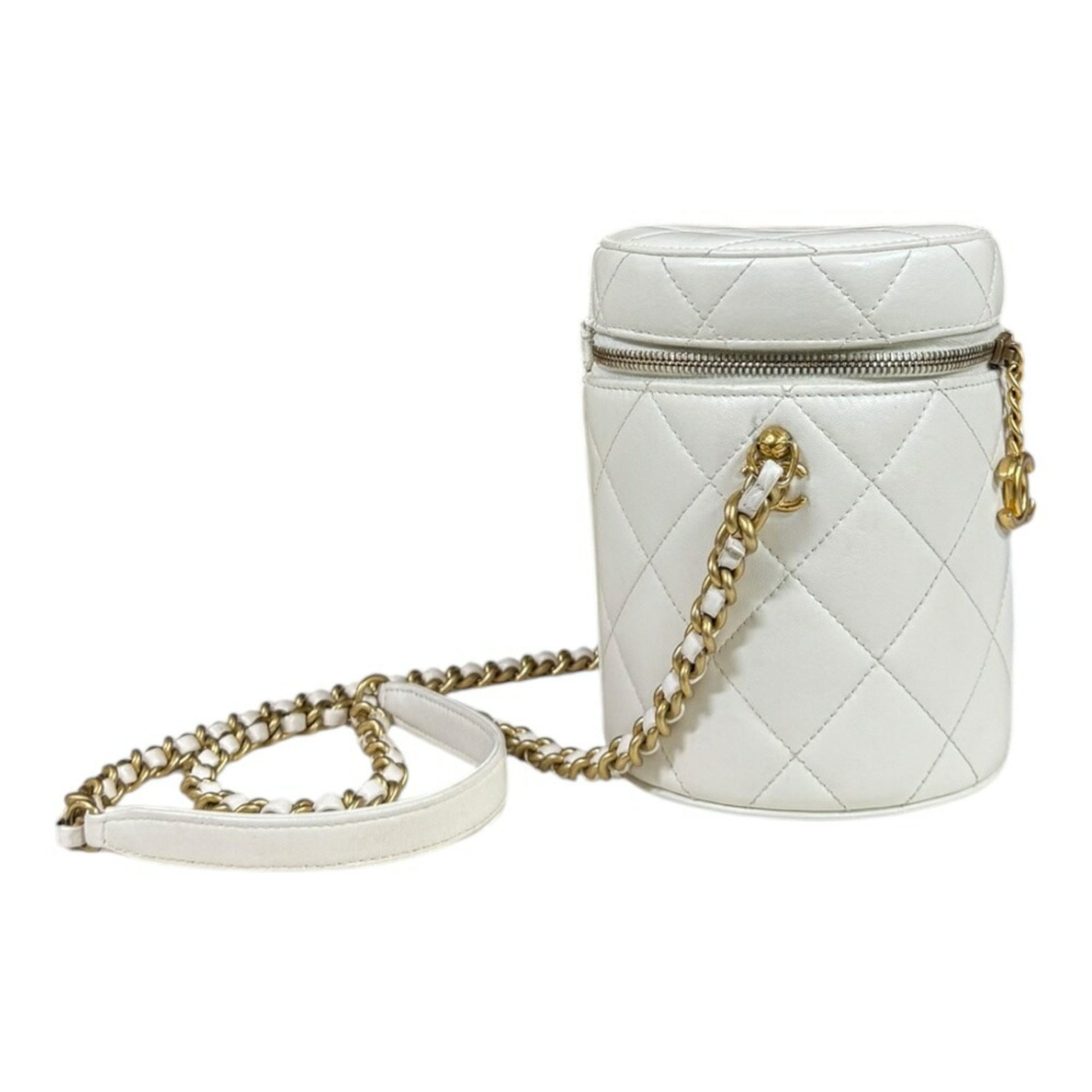 CHANEL Vanity Chain Shoulder Bag, Matelasse, Leather, AS2735, White, Women\'s,