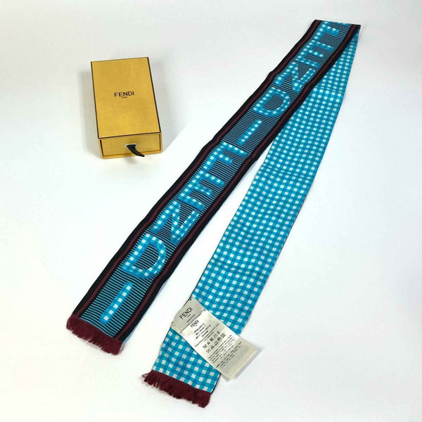 FENDI Rappy Logo Bandeau Scarf, Silk, Women\'s, Blue, Like New