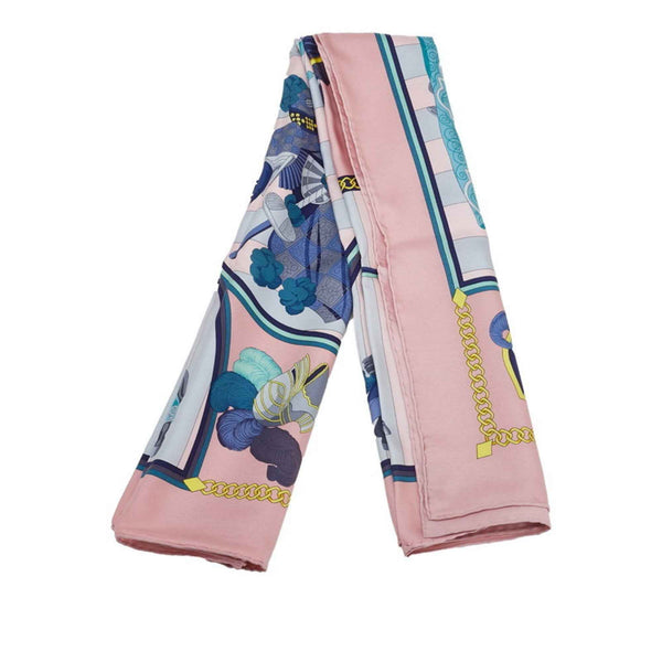 Hermes Hermès Carré 90 Chocs En Plumes Feather Clash Scarf, Pink Multicolor Silk, Women\'s