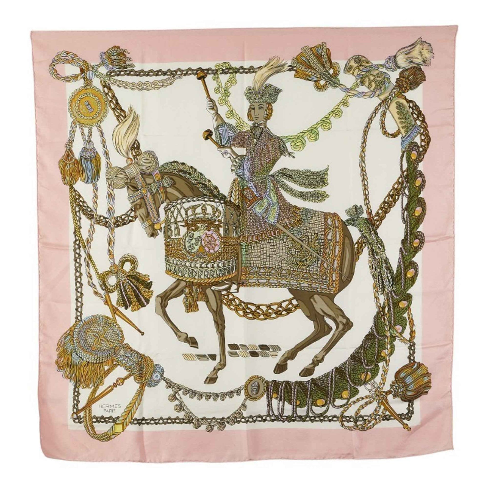 Hermes Hermès Carré 90 Le Timbalier Timpanist Scarf, Pink, White, Multicolor, Silk, Women\'s