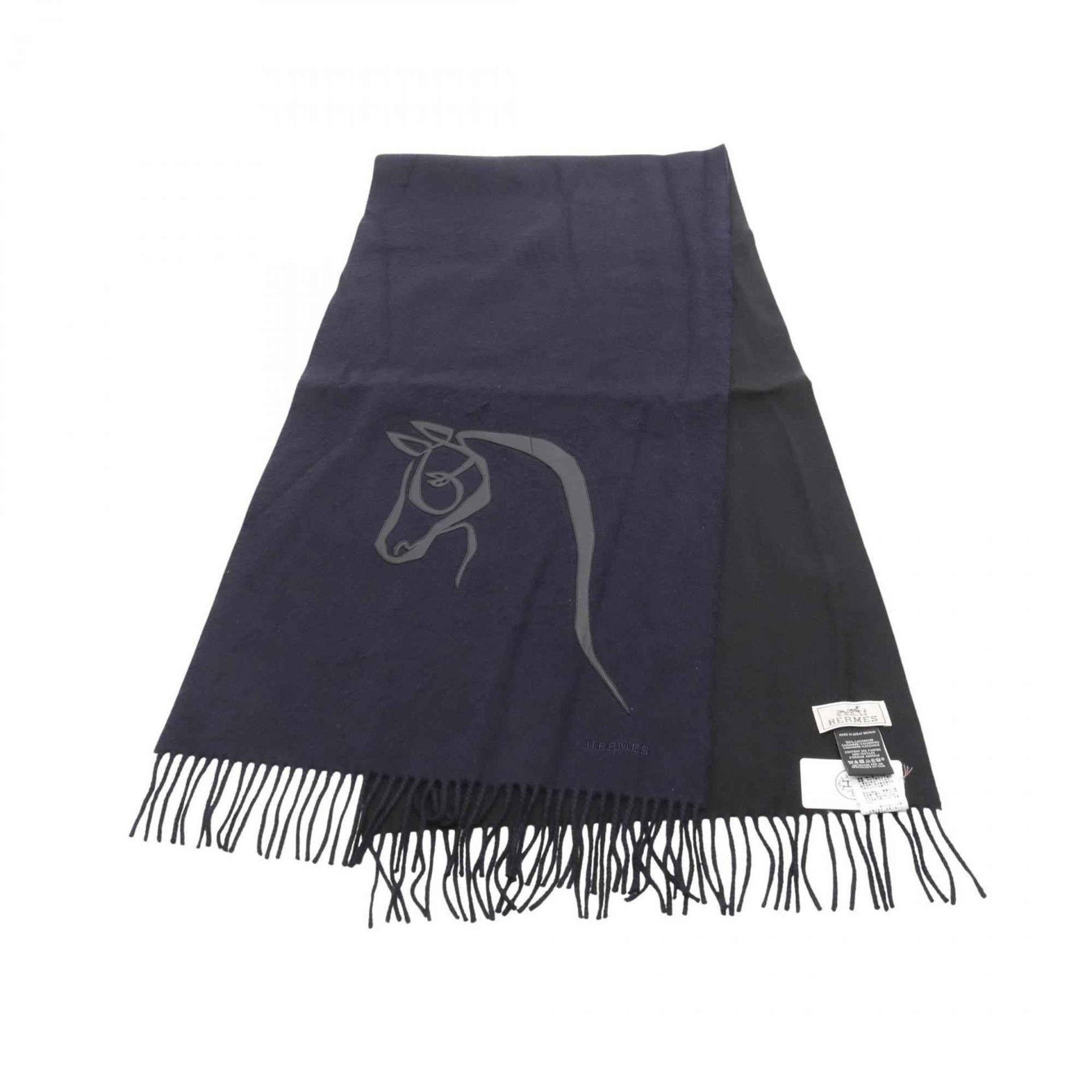 Hermes Hermès Cheval Otre scarf, cashmere, for men and women, navy/black