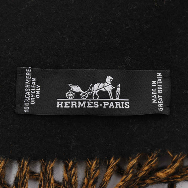 Hermes Kazak Zigzag Scarf Clothing Cashmere Women\'s Black Orange