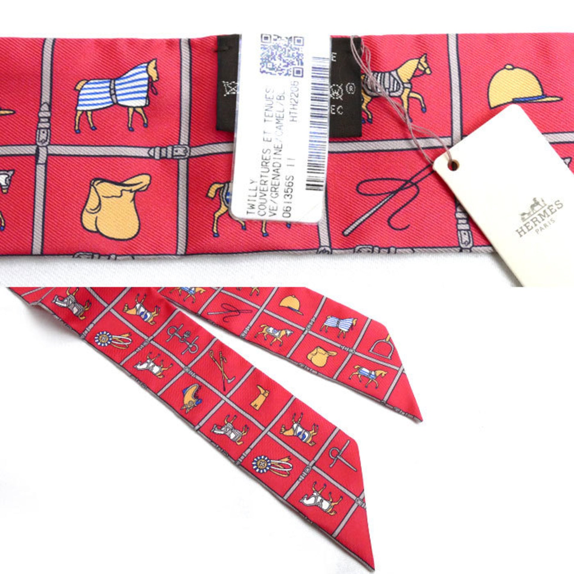 HERMES Twilly COUVERTURES ET TENUES Scarf Muffler Grenadine/Camel/Blue H061356S 11 Women\'s