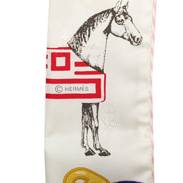 Hermes Twilly Garde Robe Pop Scarf Muffler White Multicolor Silk Women\'s HERMES