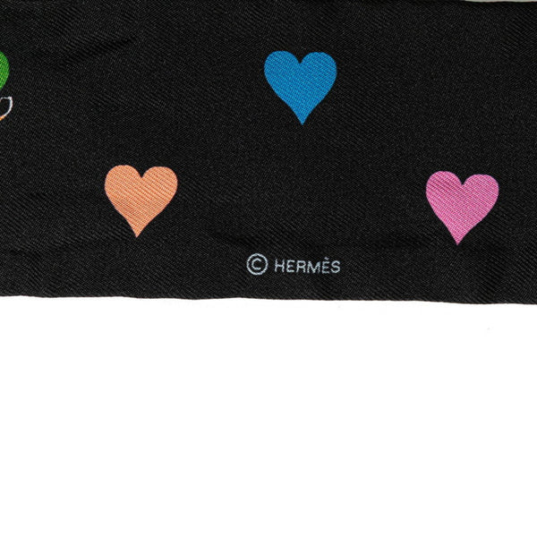 Hermes Twilly Tea Time Scarf Muffler Black Multicolor Silk Women\'s HERMES