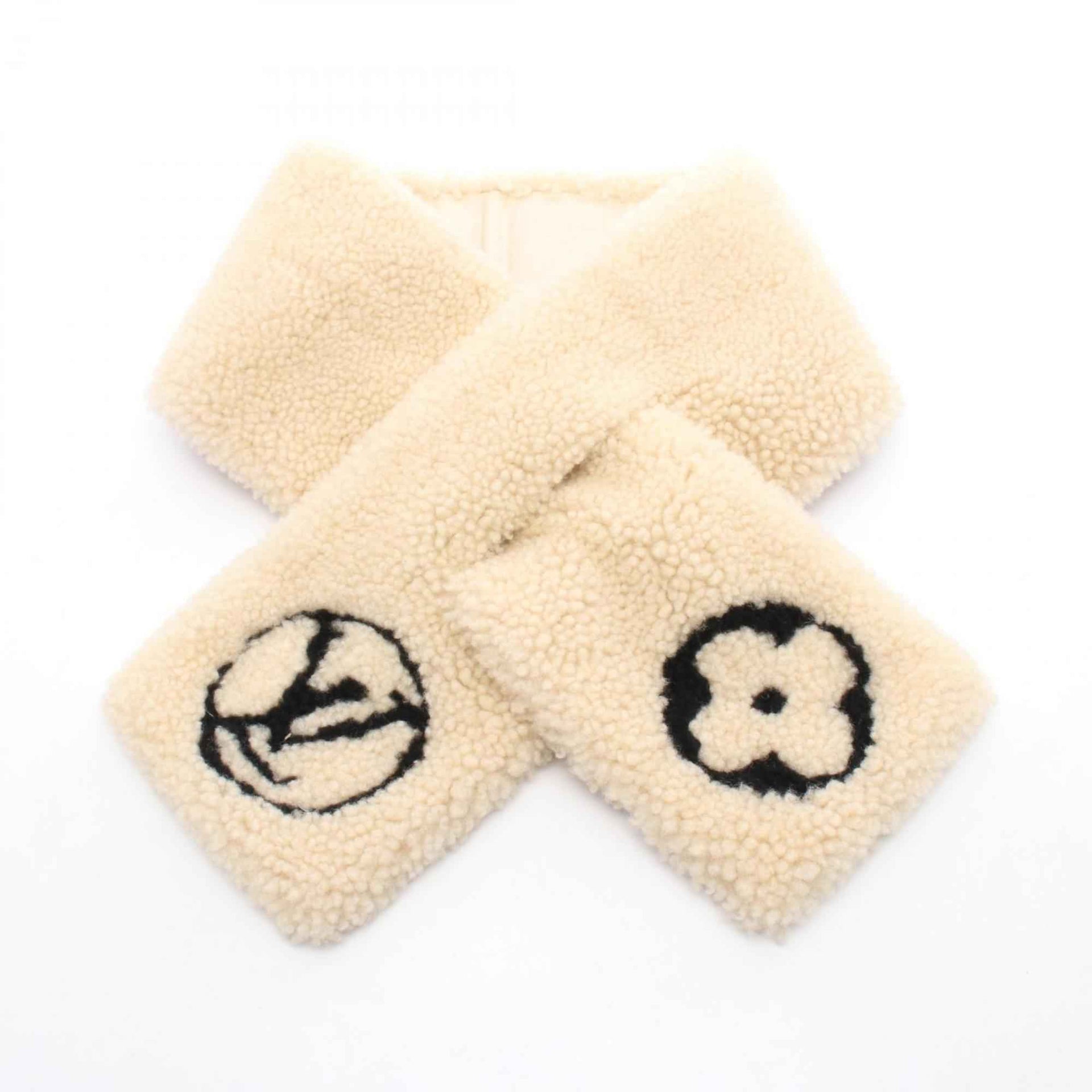 Louis Vuitton Echarpe Shirring Lamb Scarf, Women\'s, Mouton, Ivory/Black, M76452