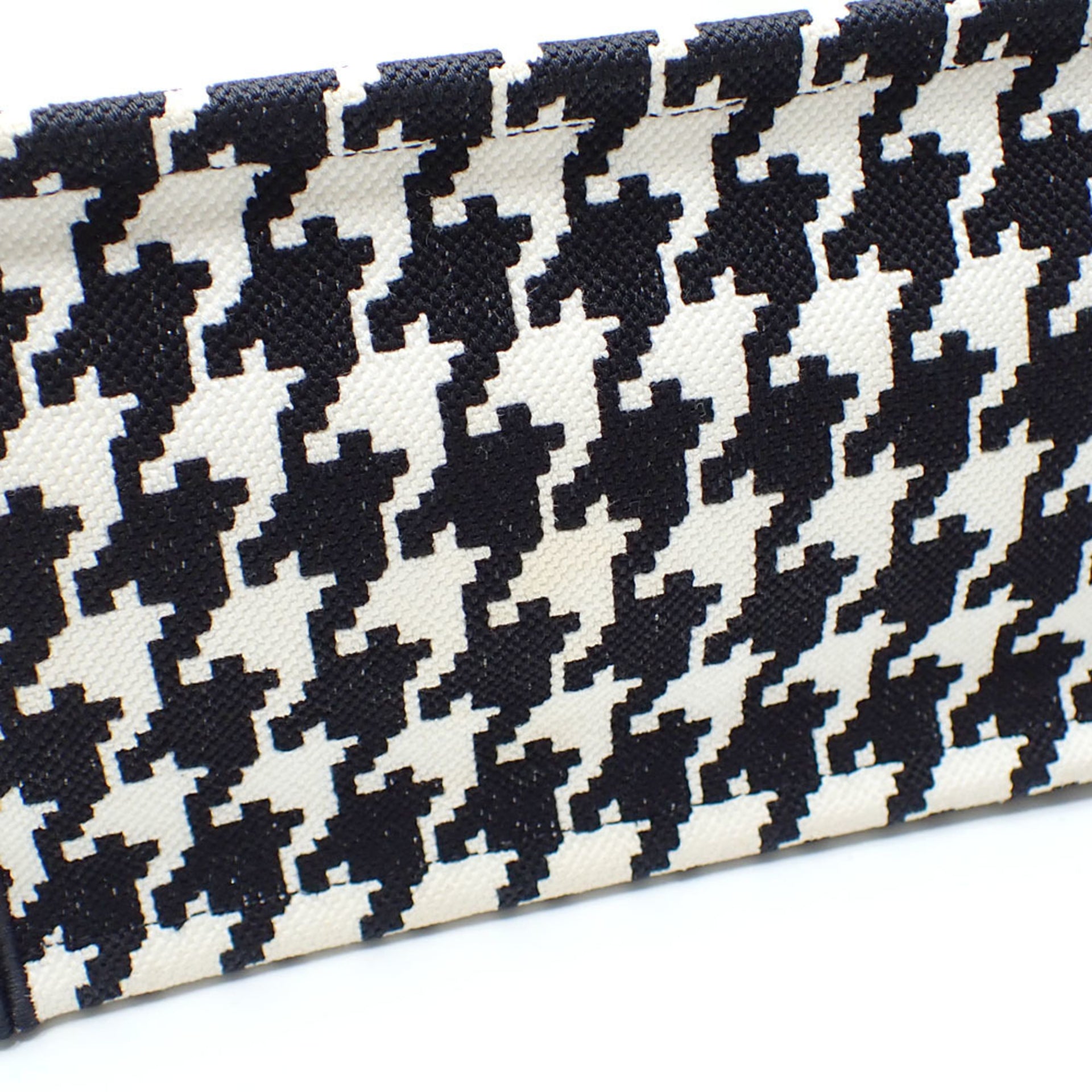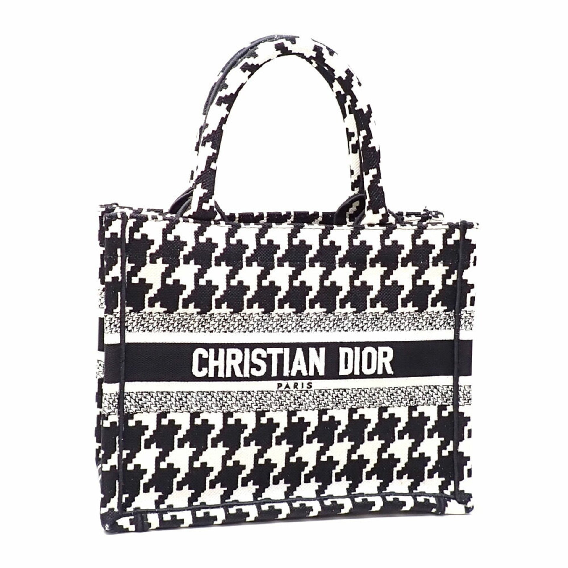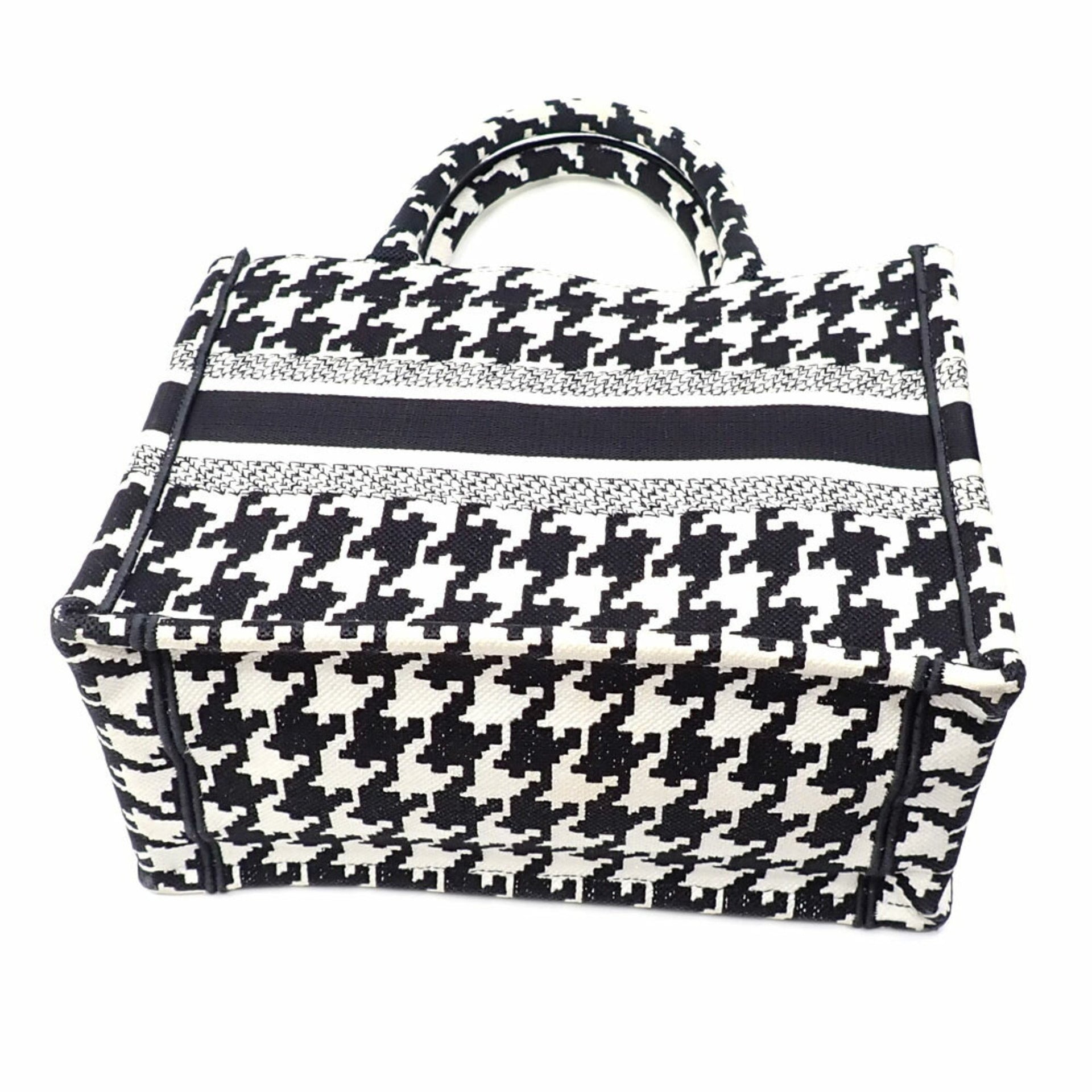 Christian Dior Book Tote Bag, Small, Women\'s, Black and White, Cotton, M1265ZTQT_M911, Houndstooth Pattern, A6051093