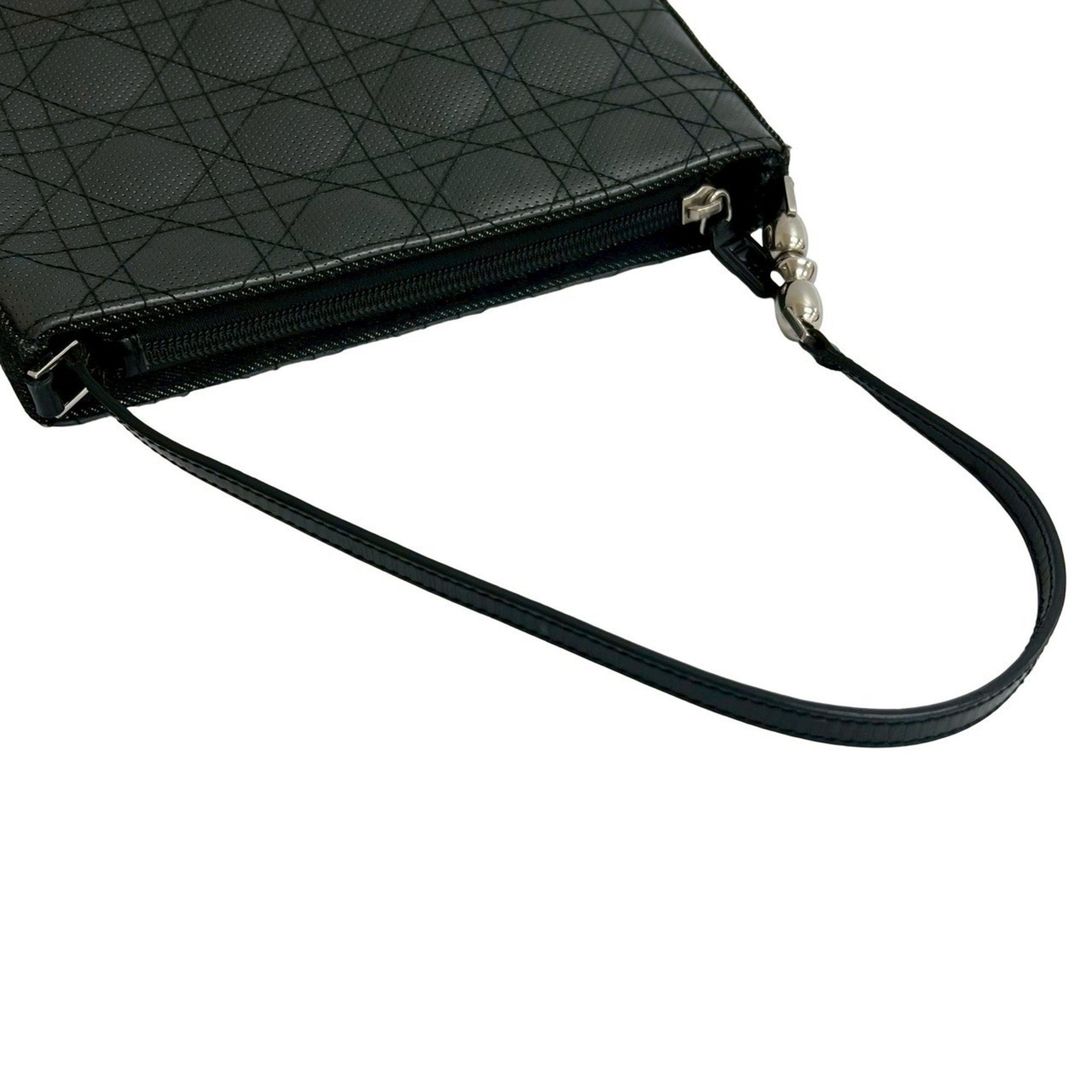 Christian Dior Cannage Stitched Perforated Leather Semi-One Shoulder Bag, Black, 44722