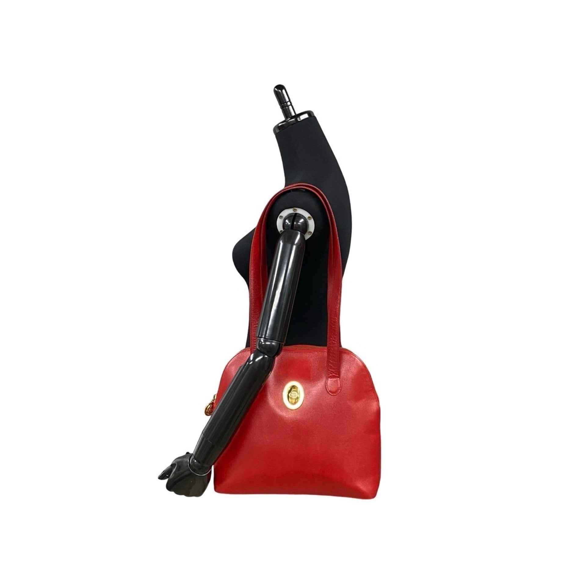 Christian Dior CD logo hardware leather semi-shoulder bag/mini tote bag in red 60294