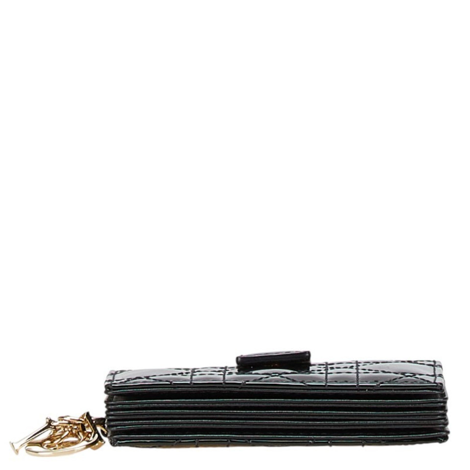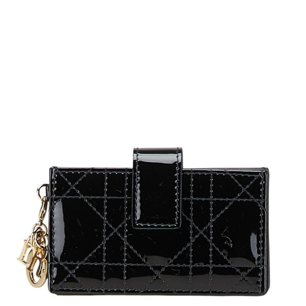 Christian Dior Dior Lady Cannage Business Card Case in Black Patent Leather for Women