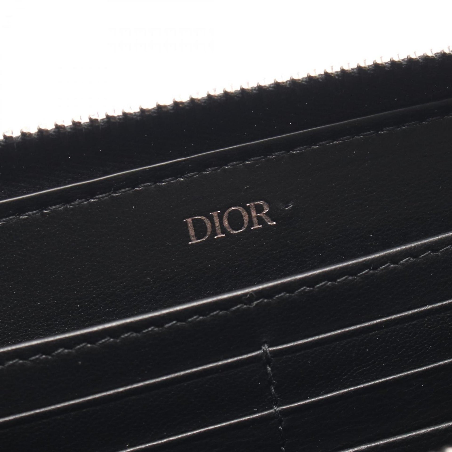 Christian Dior Dior logo round long wallet, leather, men\'s, black and gray