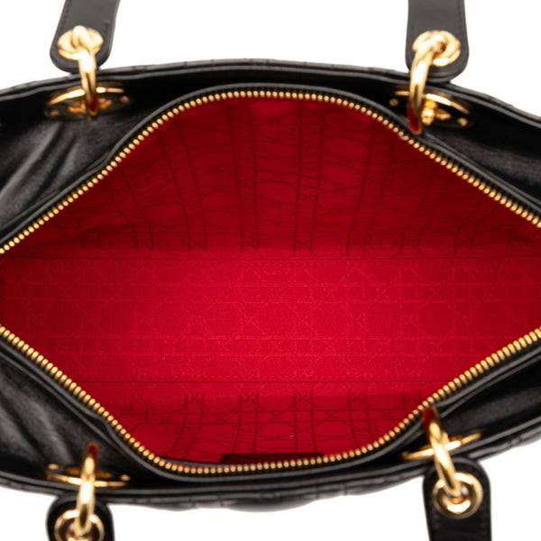 Christian Dior Dior Macrocannage Book Tote Medium Bag/Shoulder Bag, 2-Way, Black Leather, Women\'s