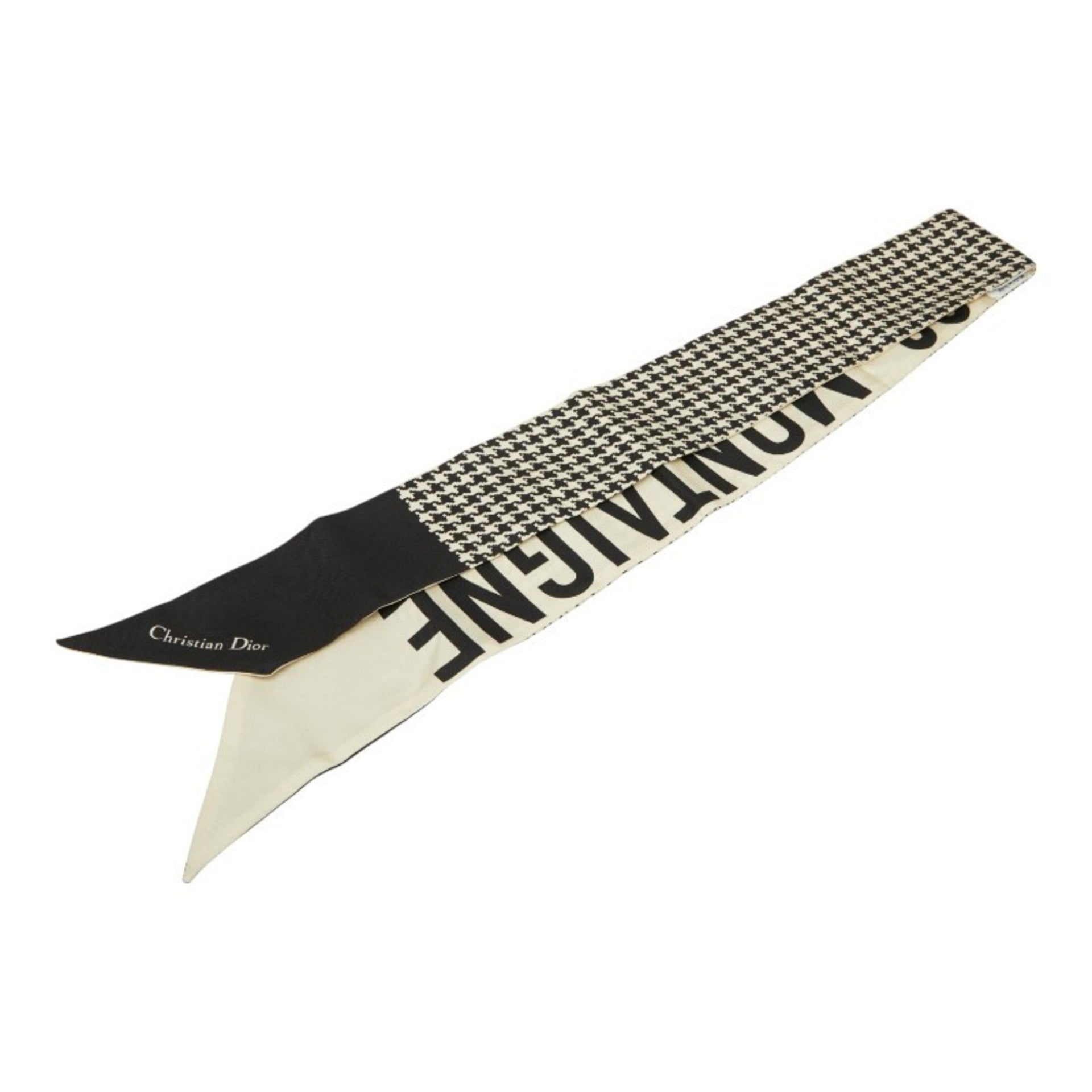 Christian Dior Dior Mitzah Montaigne Houndstooth Scarf, Beige, Black, Silk, Women\'s,