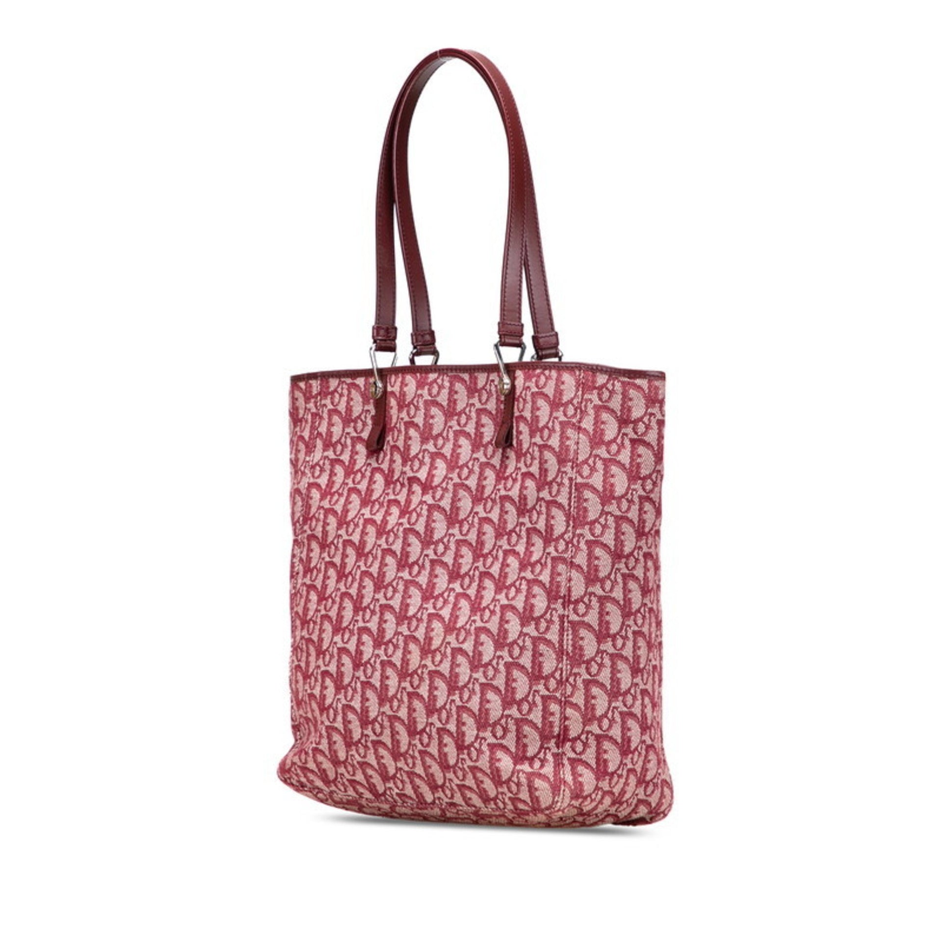 Christian Dior Dior Trotter Tote Bag Shoulder Bordeaux Wine Red Canvas Leather Women\'s