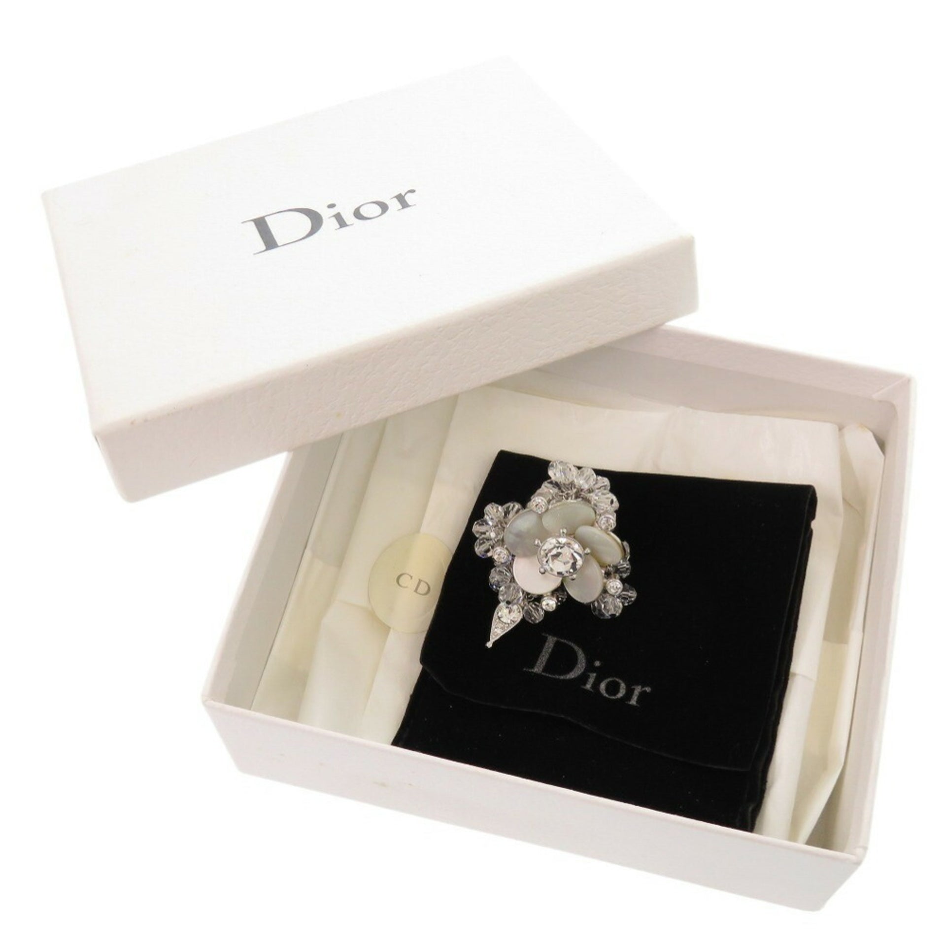 Christian Dior Flower Motif Metal Crystal Size 11 Silver Ring 1388Christian