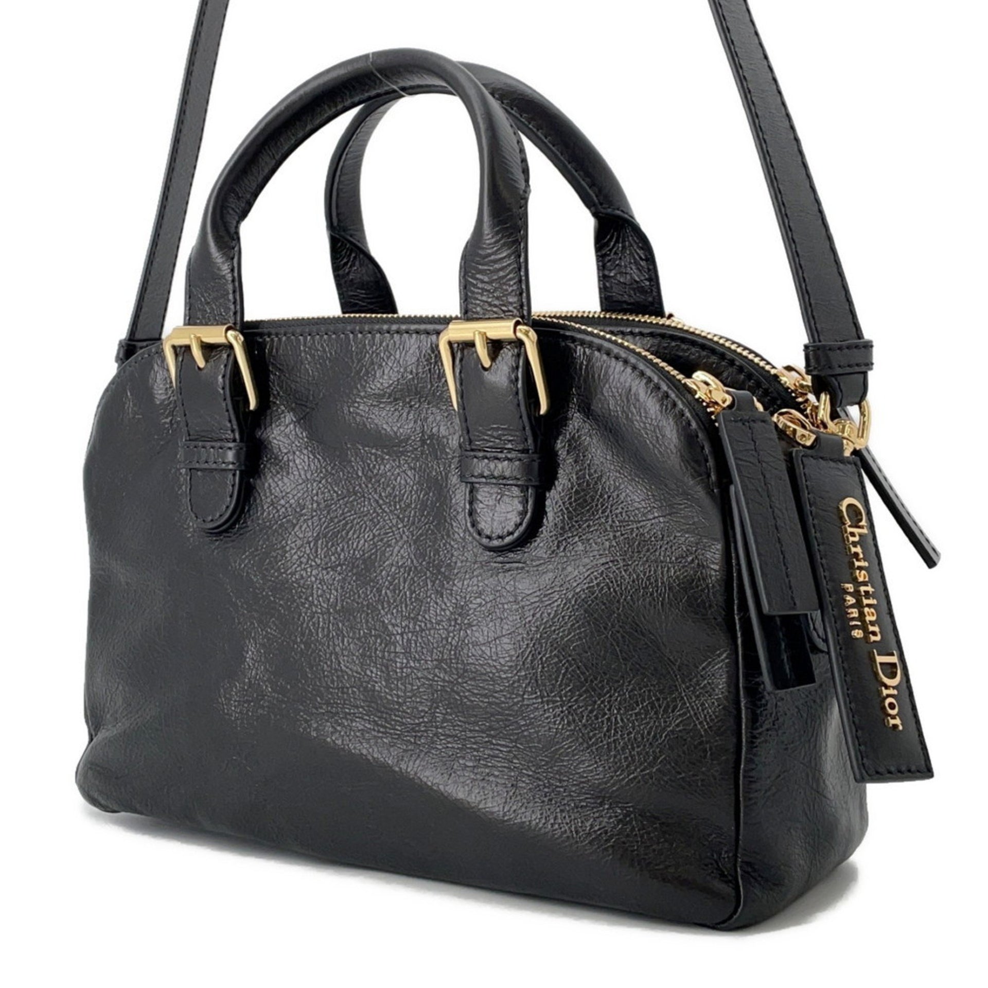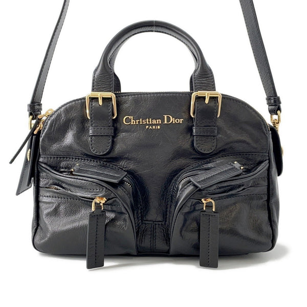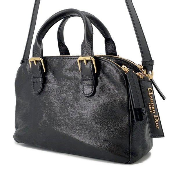 Christian Dior Grand Tour Handbag, Crinkled Calfskin Leather, M6000UNQD, 2-Way, Black