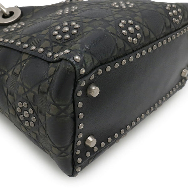 Christian Dior Lady Studded Cannage Handbag/Shoulder Bag in Black Calfskin