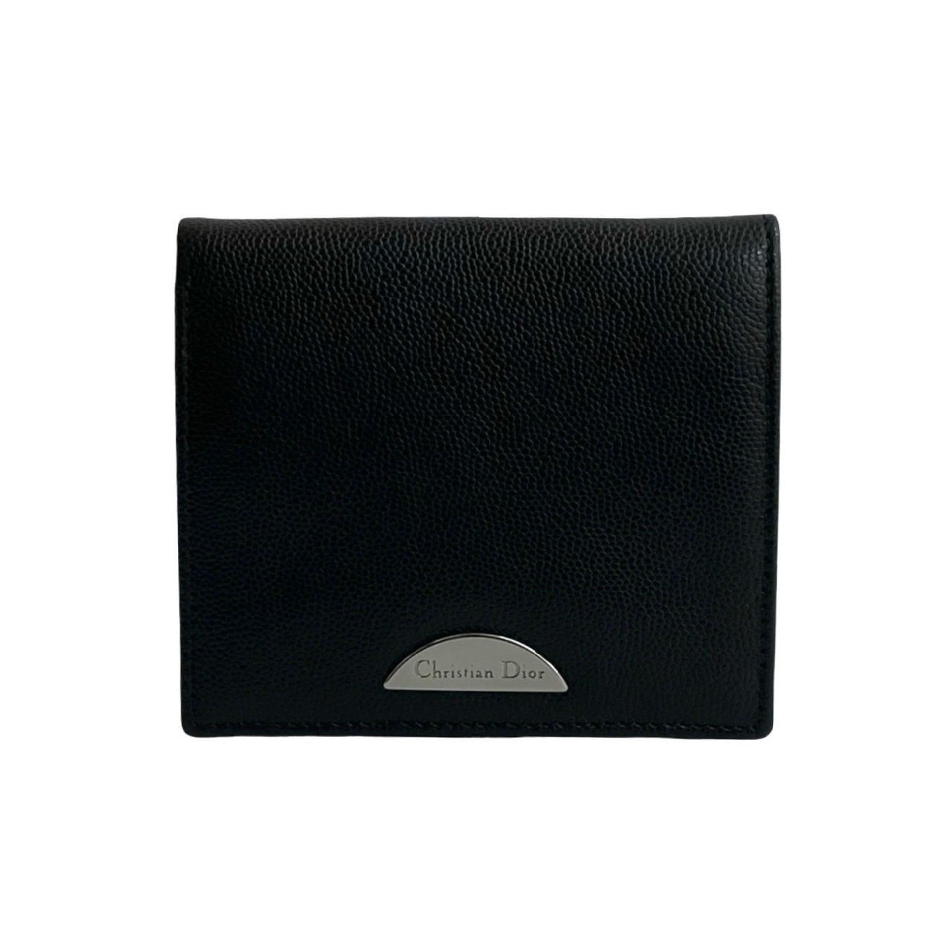 Christian Dior logo hardware leather genuine bifold mini wallet black 29110
