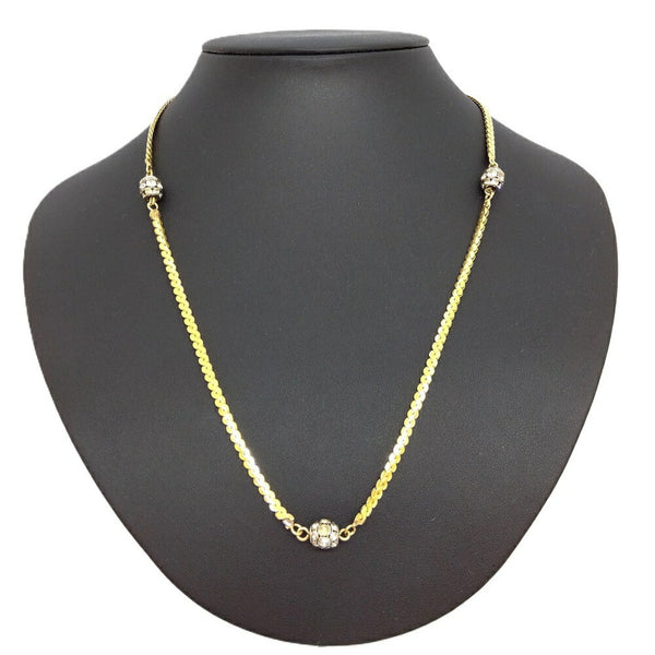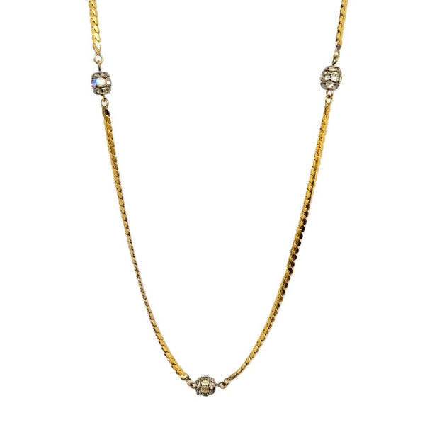 Christian Dior Necklace Gold Rhinestone 3P Ball Long 1975