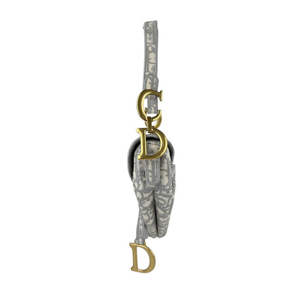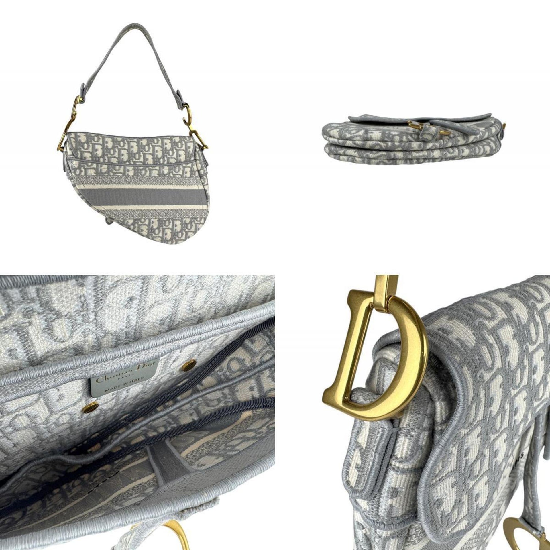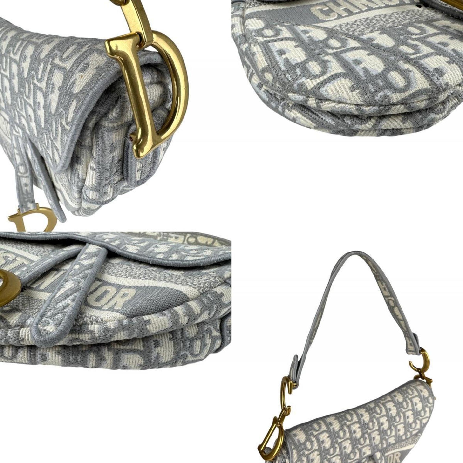 Christian Dior Saddle Bag, Canvas, Gray, White, Gold, Women\'s, Z6728