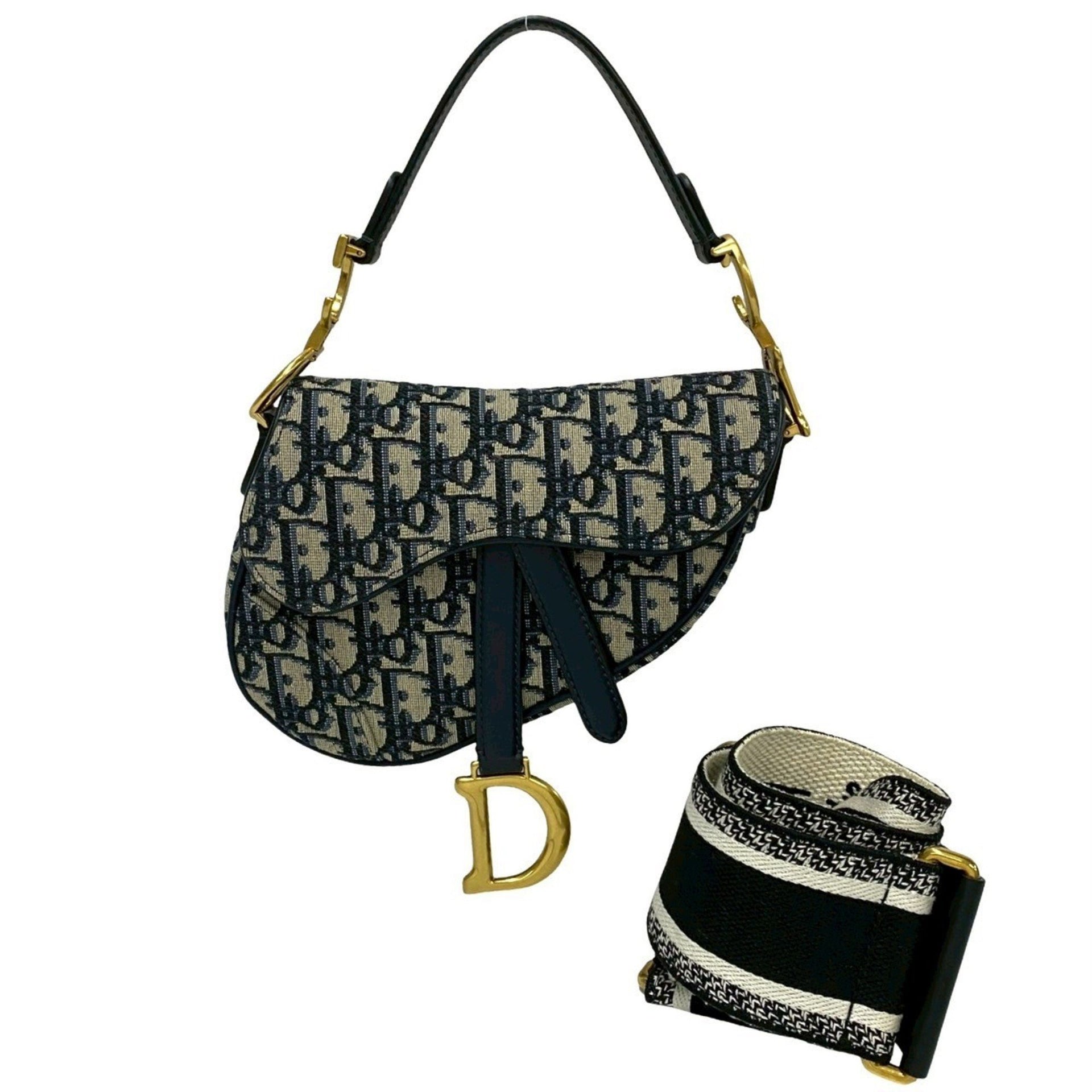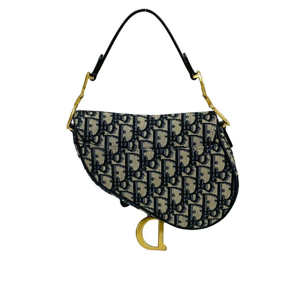 Christian Dior Saddle Bag Oblique Trotter Leather 2-Way Shoulder Bag/Handbag Navy 10858