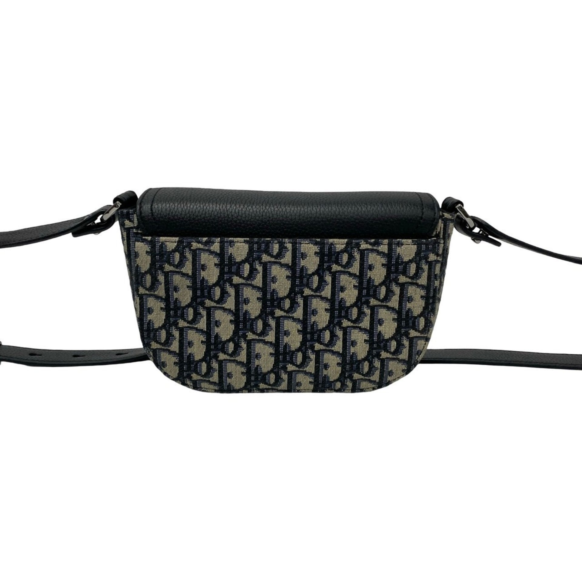 Christian Dior Saddle Pouch Oblique Leather and Canvas Shoulder Bag, Black, 81618