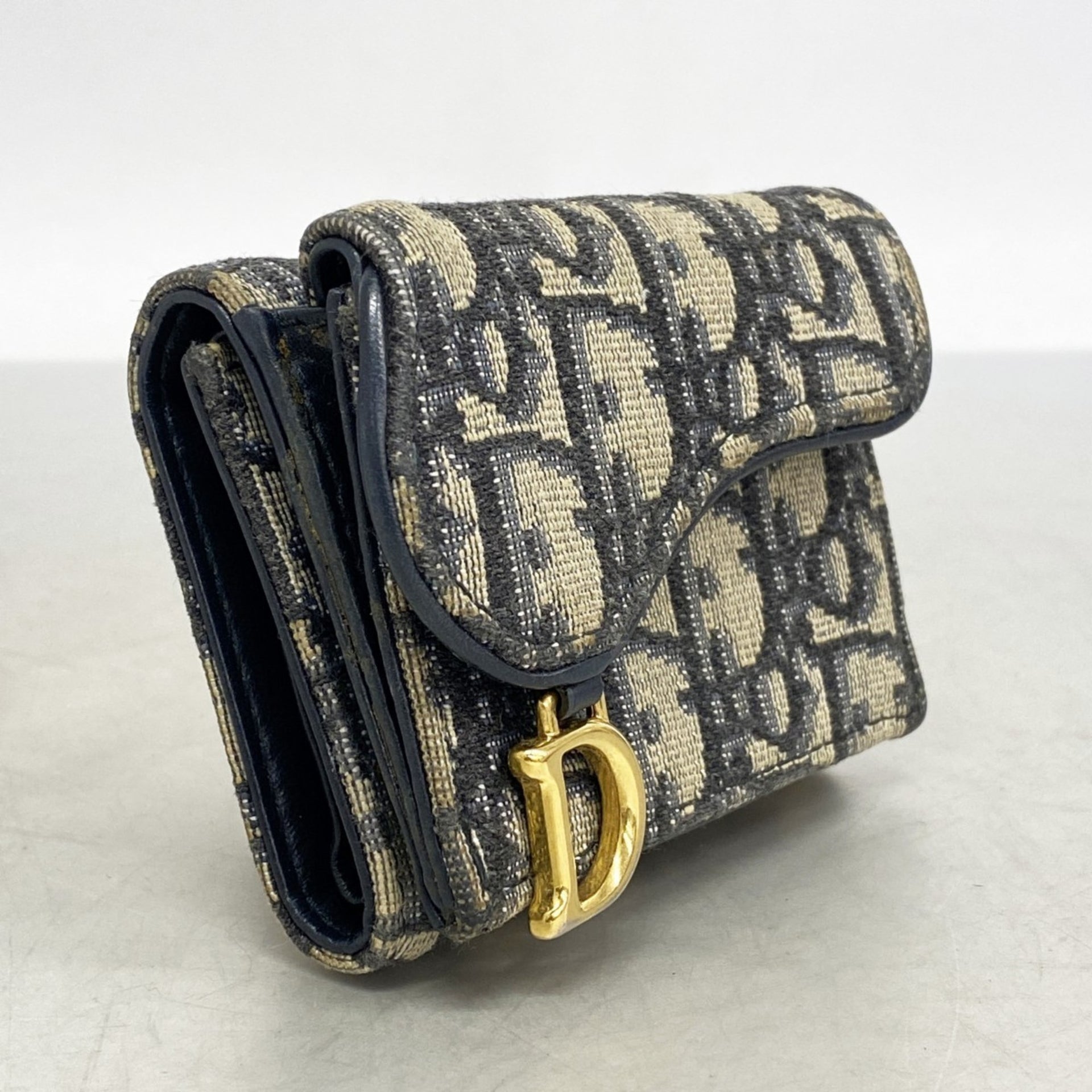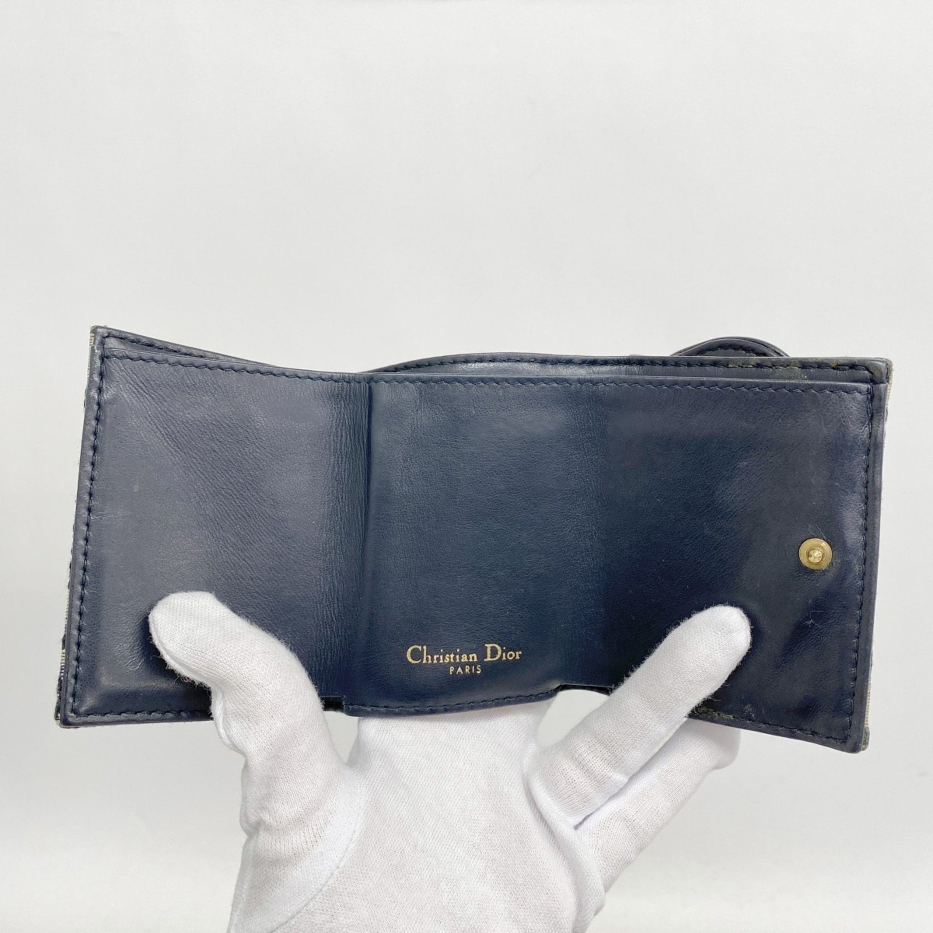 Christian Dior Trotter Saddle Canvas Tri-fold Wallet, Navy, Women\'s