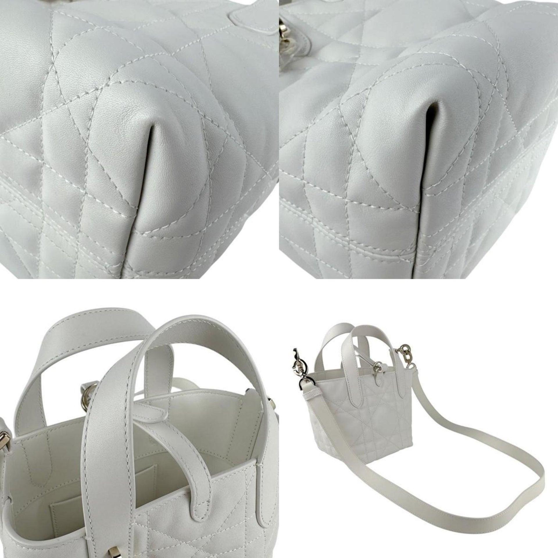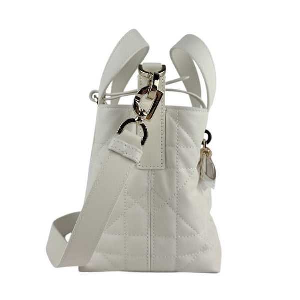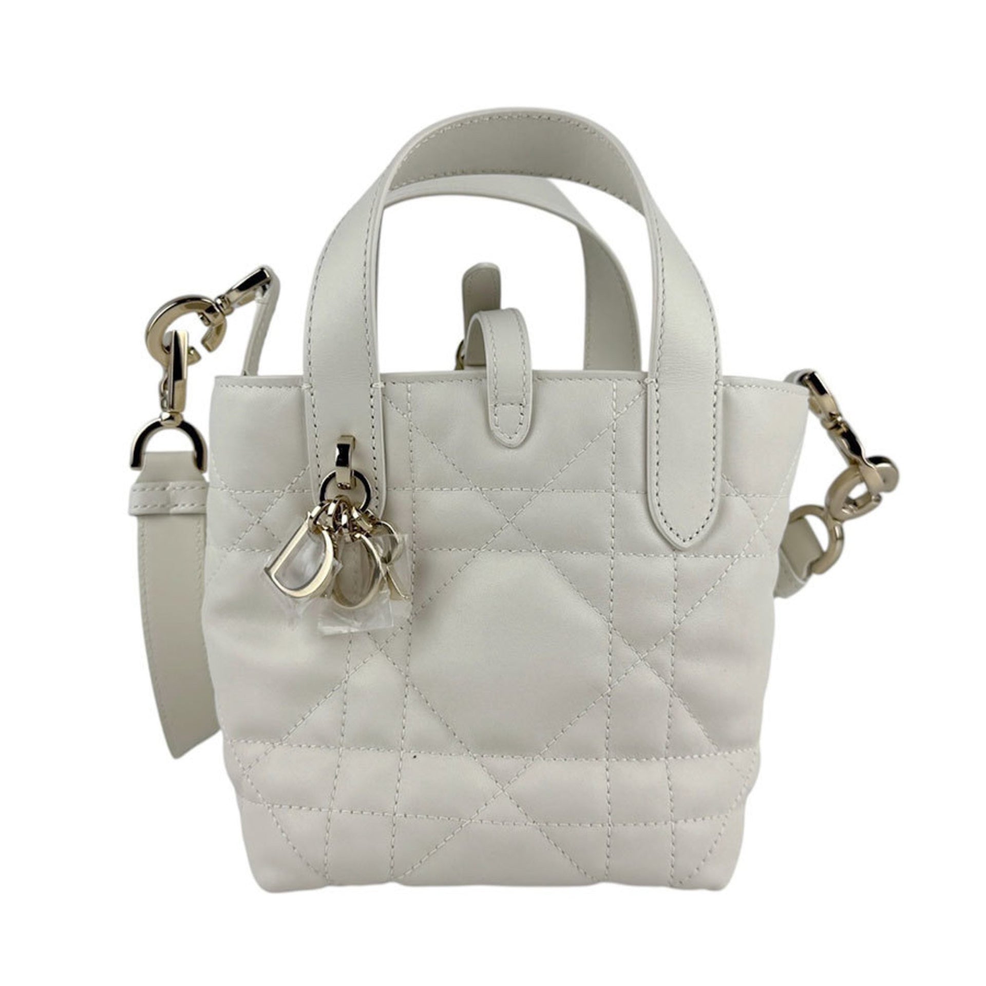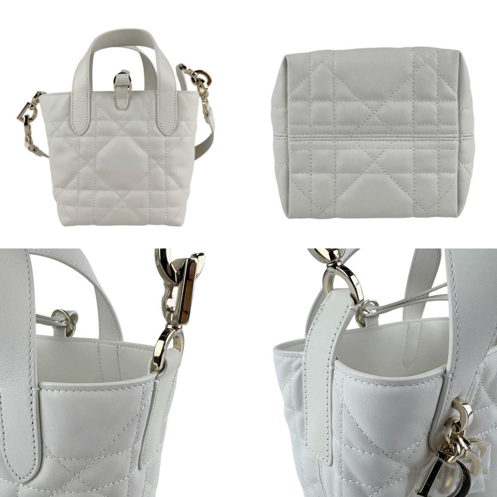 Christian Dior Vertical Nano Tote Bag in White and Light Gold Leather, Women\'s, Z6925