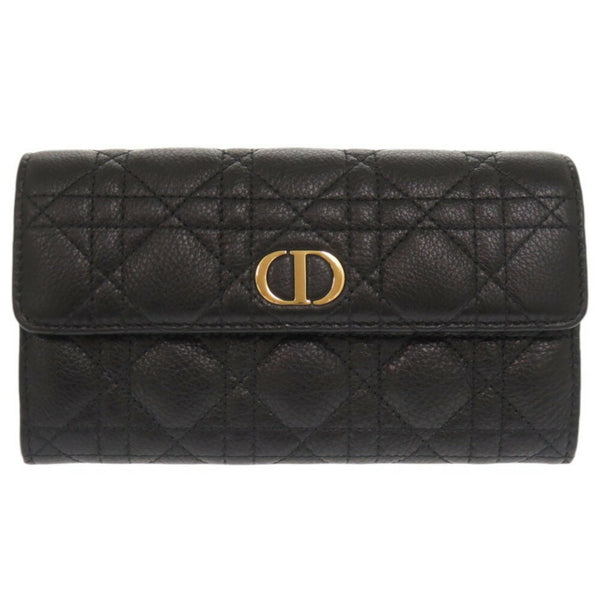 Like new Christian Dior Caro Orchid Cannage calfskin black long wallet 0068