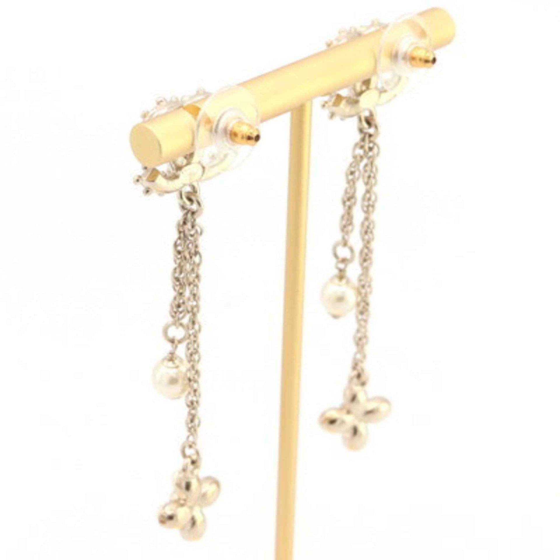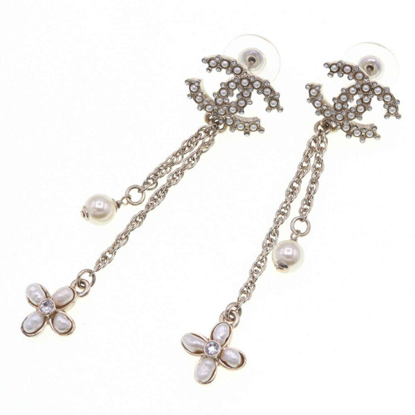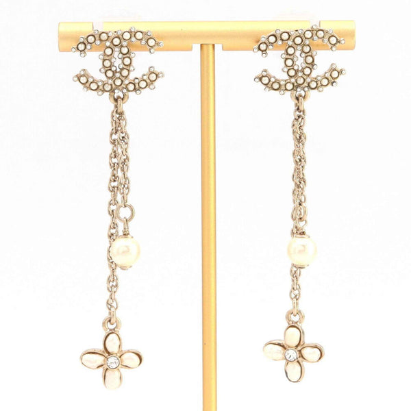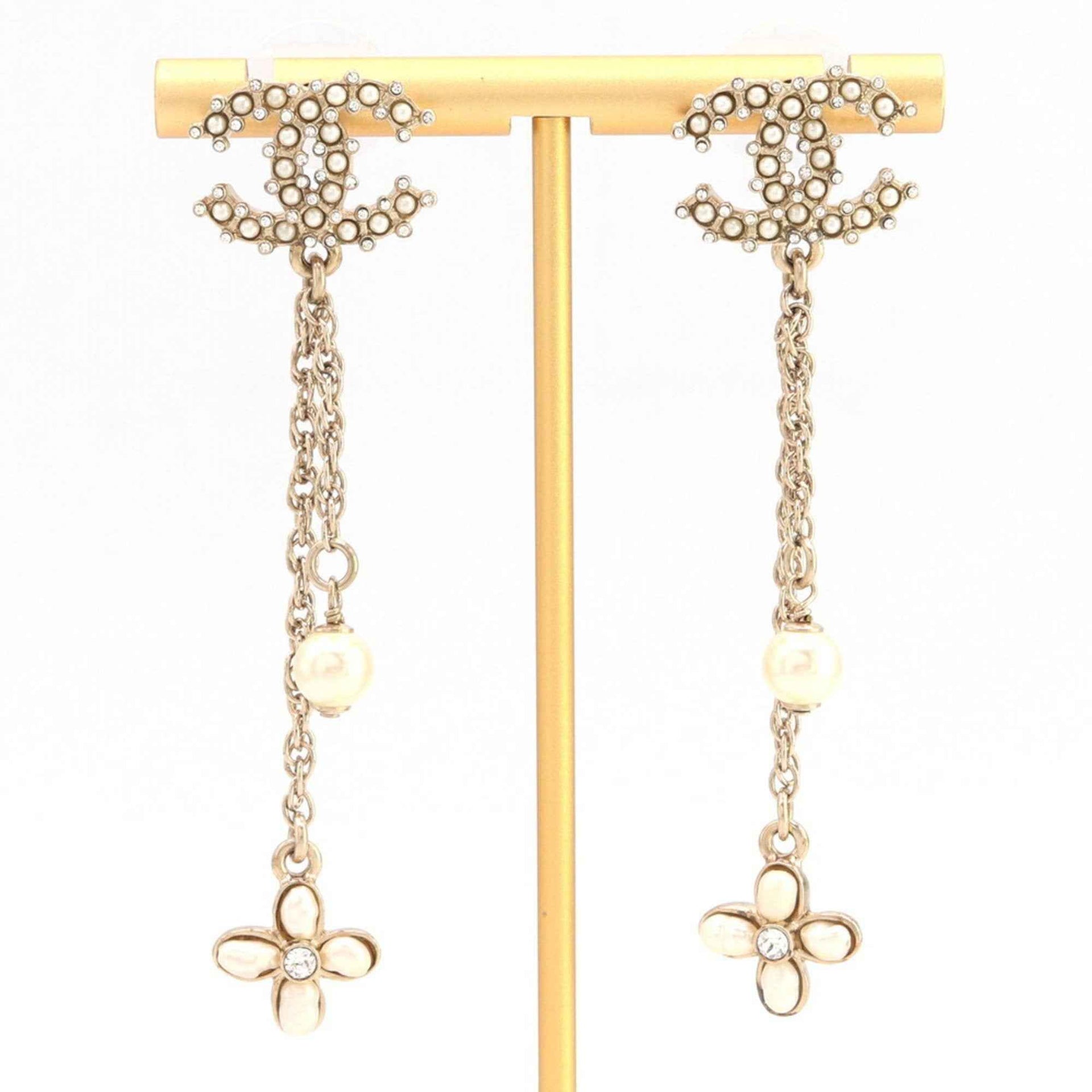 Chanel Coco Mark Flower Earrings in Matte Gold Metal with Faux Pearl and Rhinestones, 19C 2019 Model, Women\'s Chain